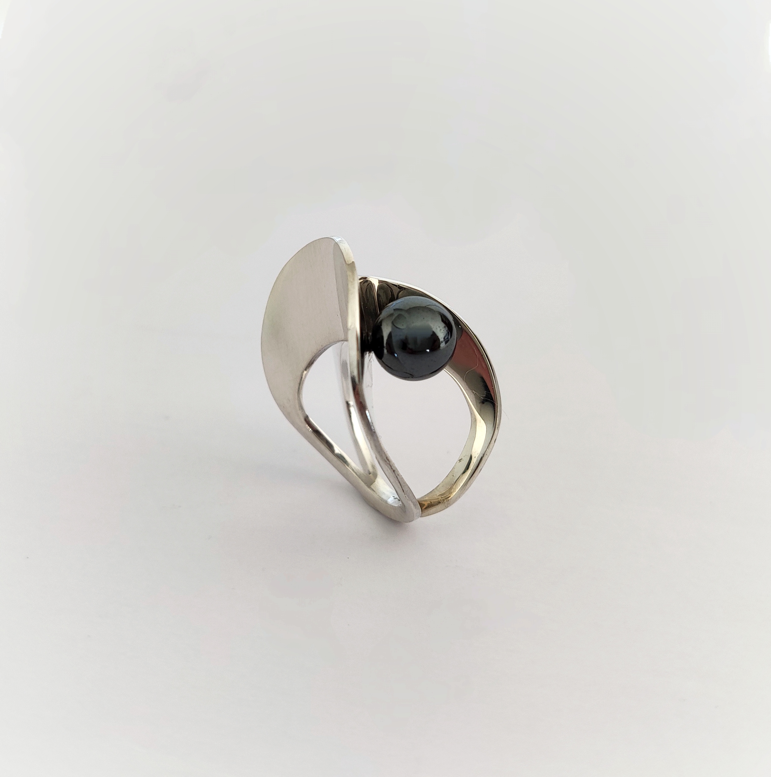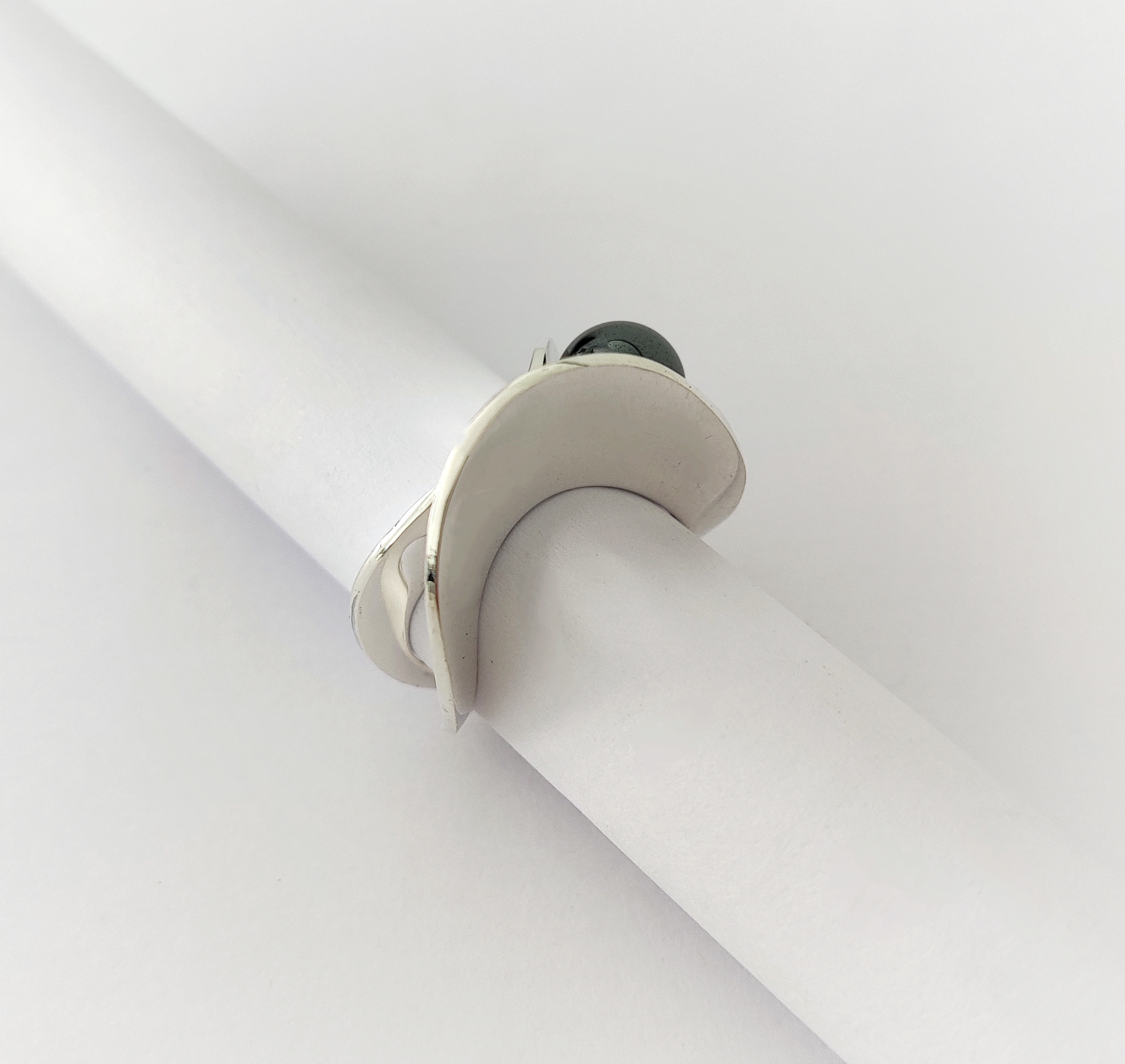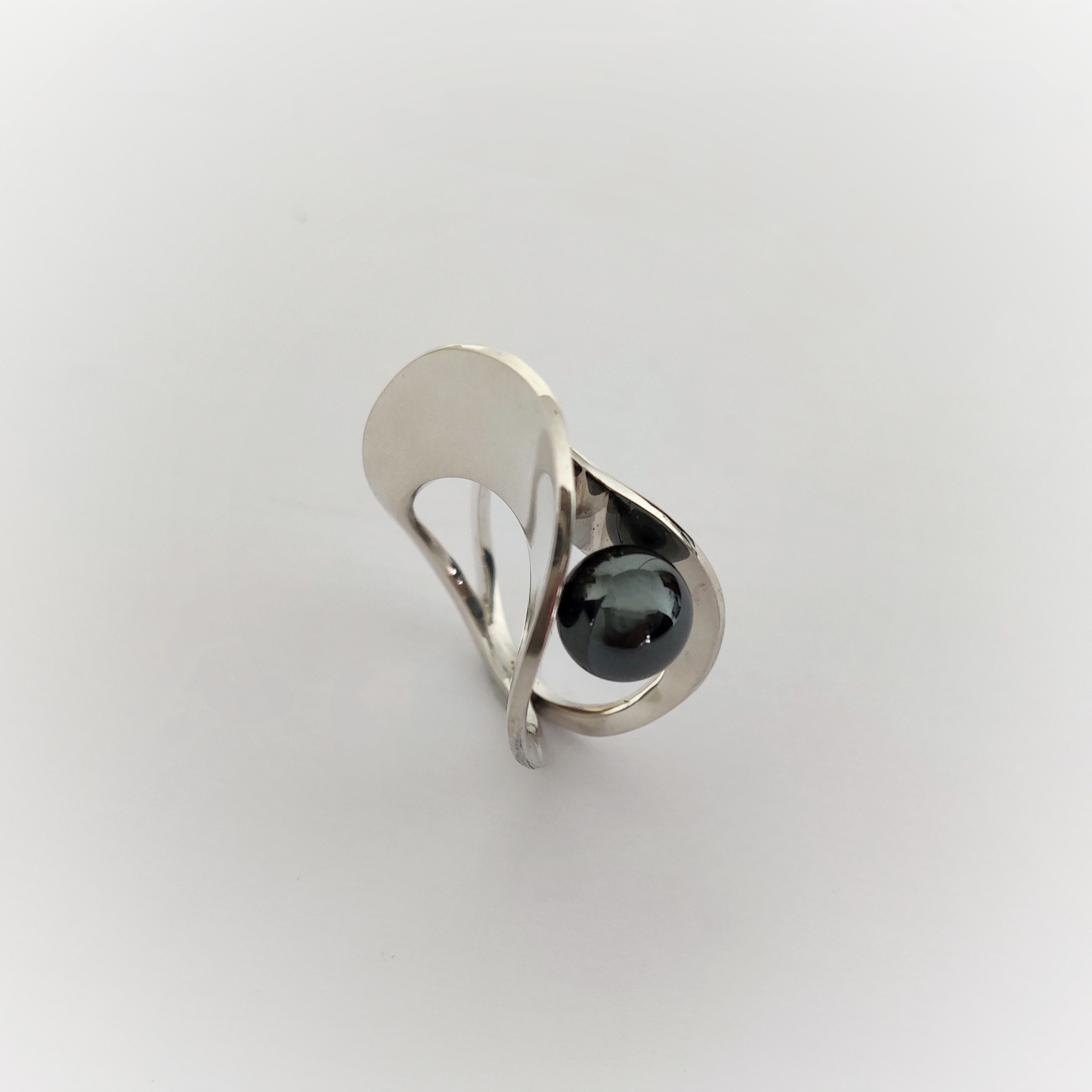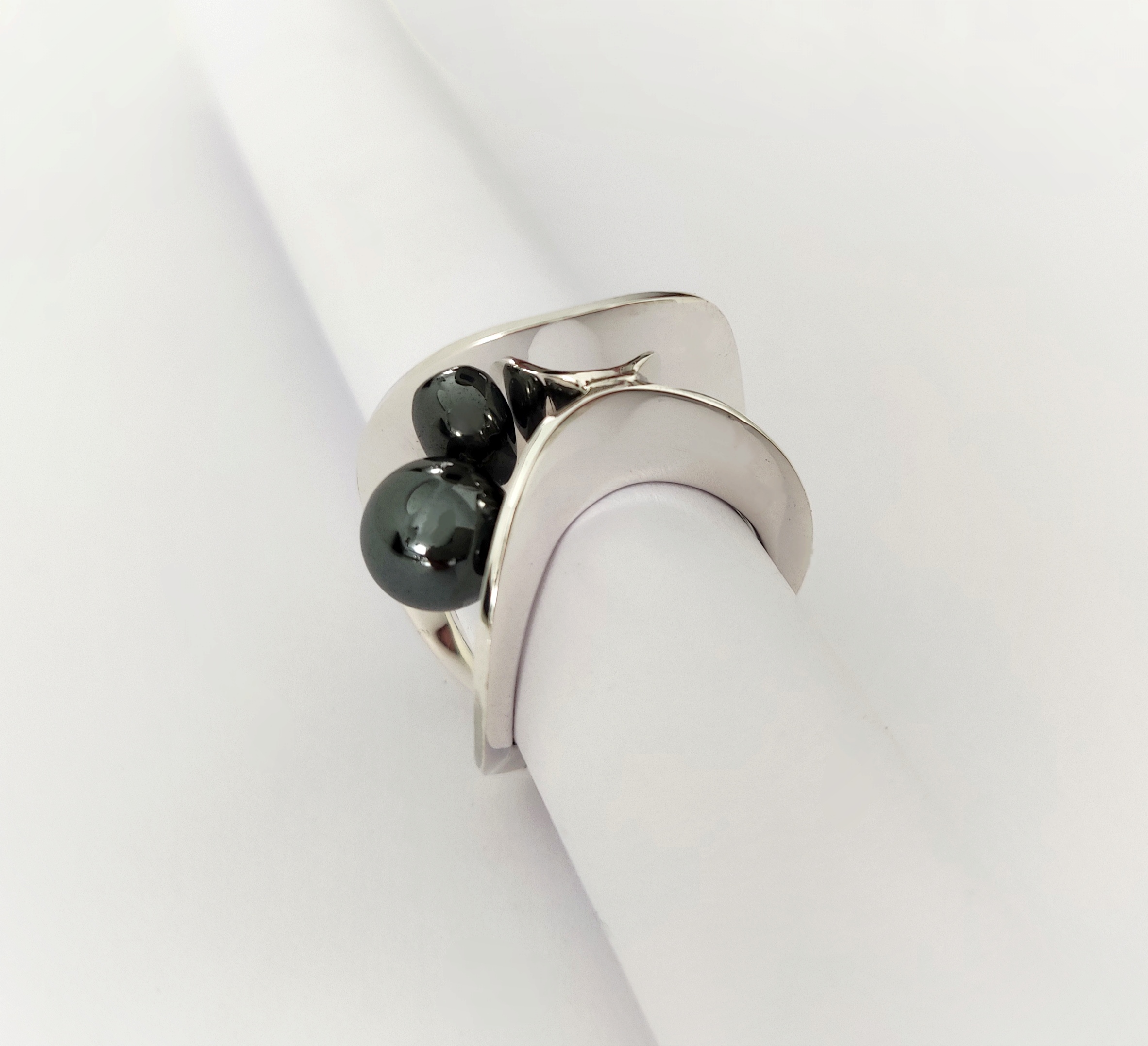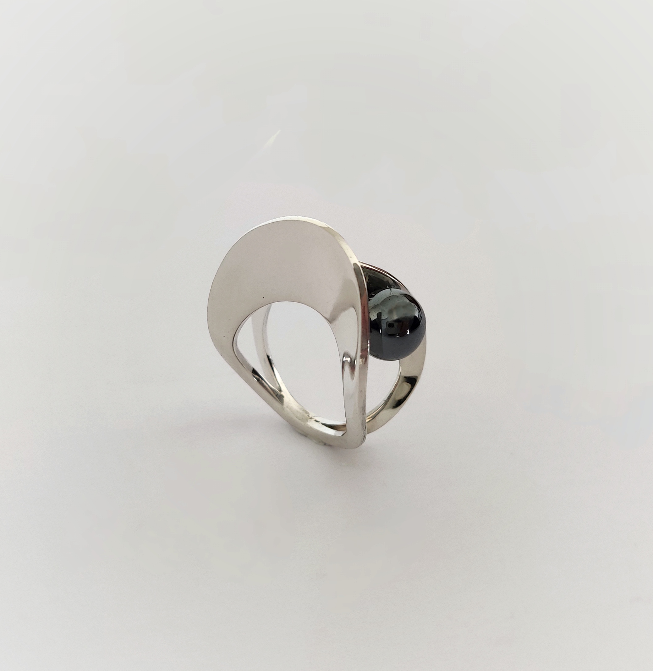 Pendientes de plata de primera ley o 925 milésimas, con acabado pulido efecto espejo y bola de hematite de 8 milímetros de diámetro. Cierre de tuerca de presión.