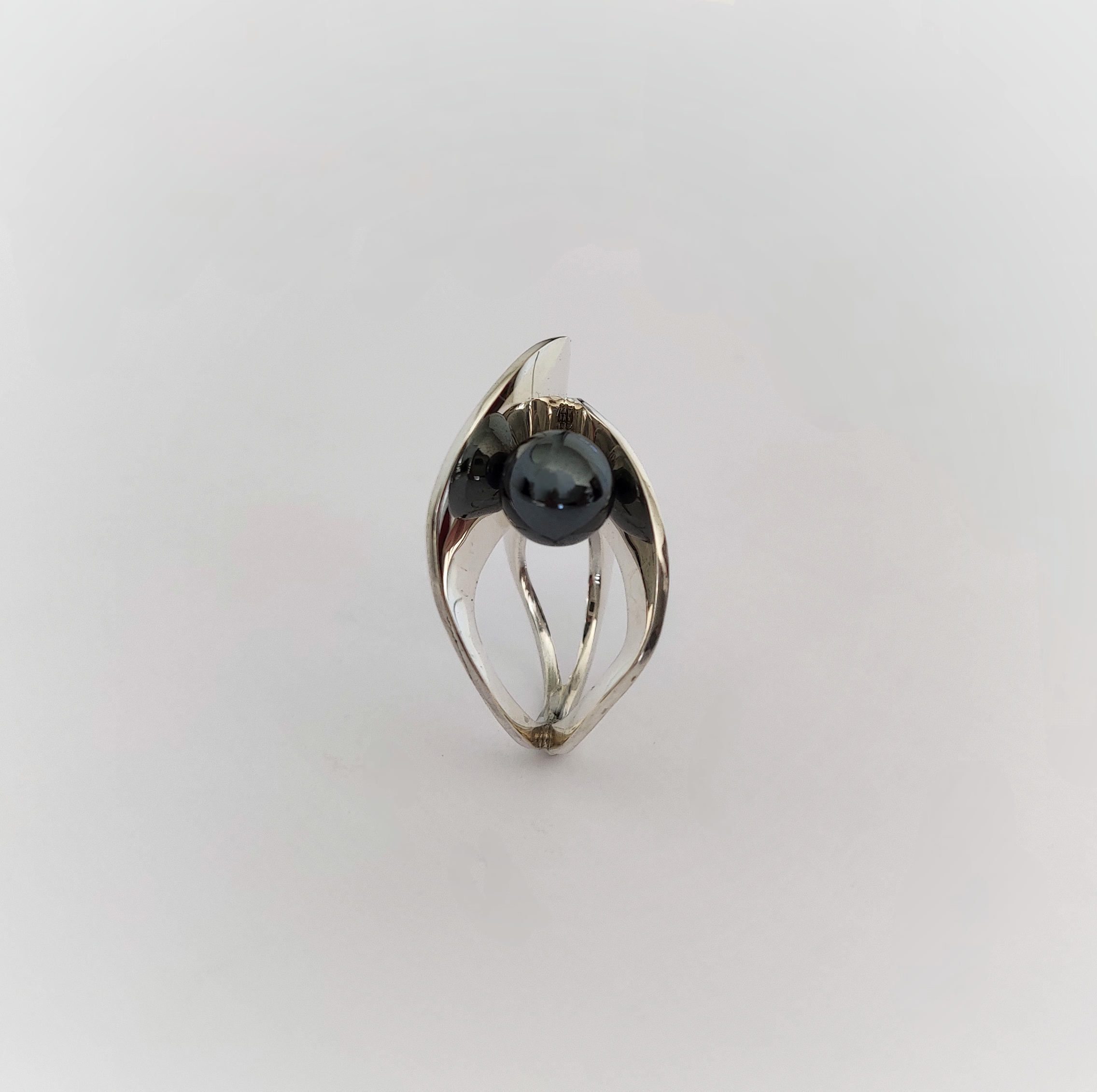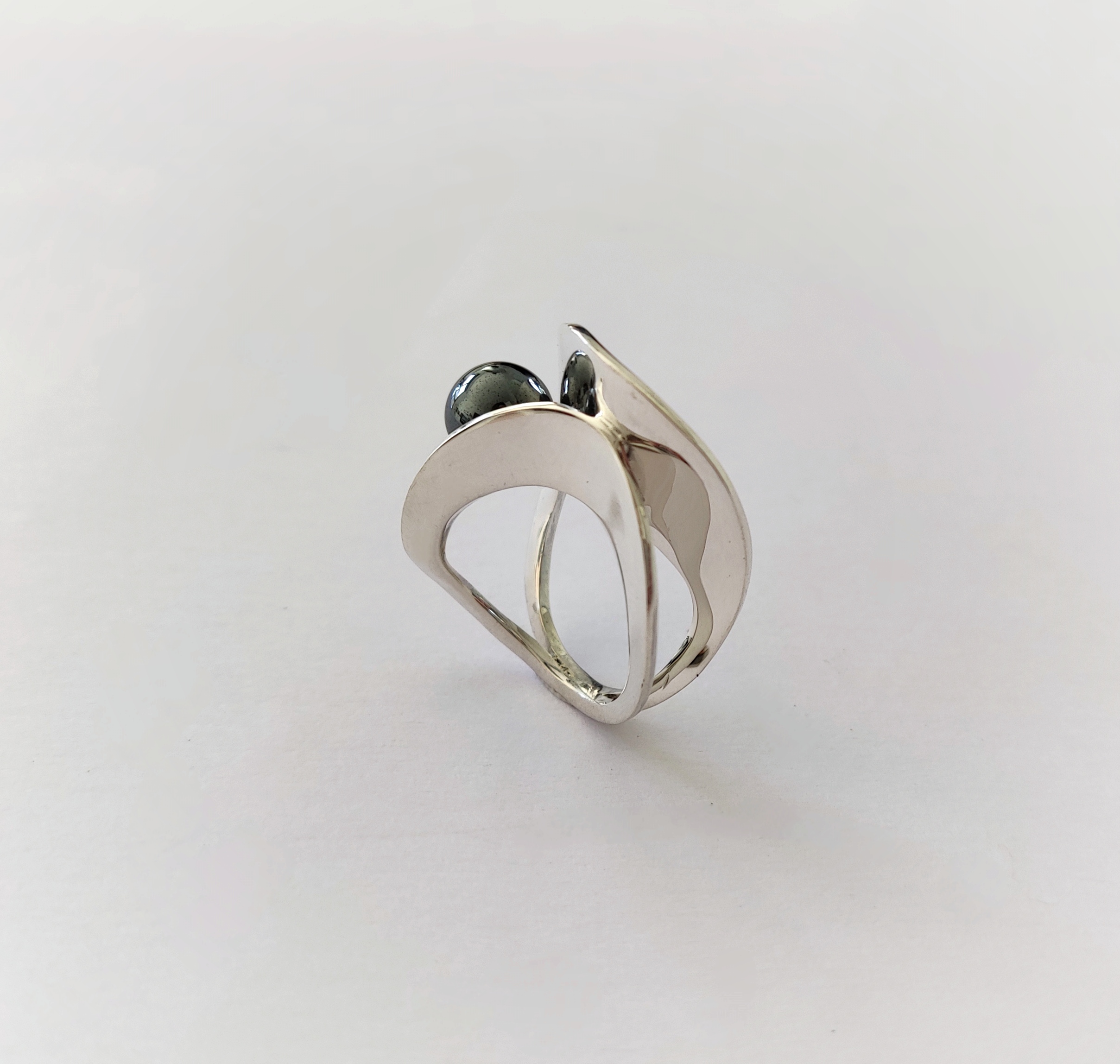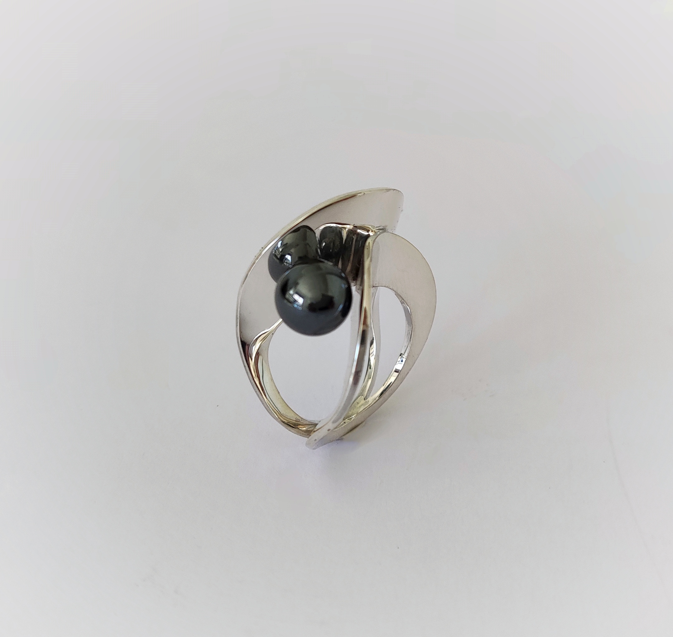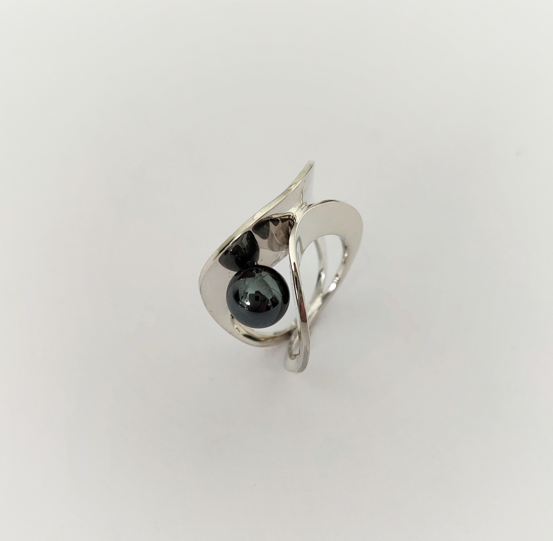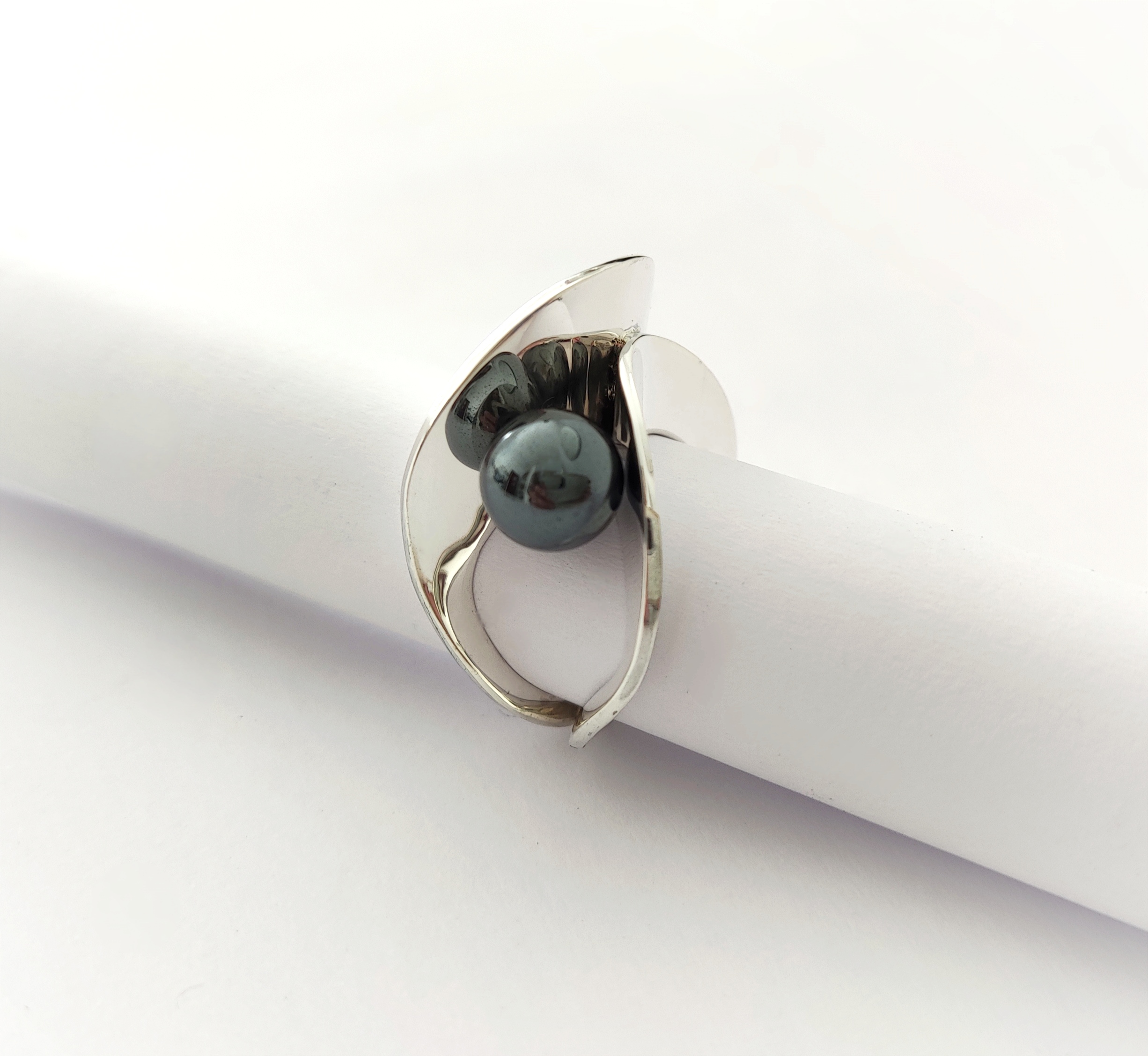 Pendientes de plata de primera ley o 925 milésimas, con acabado pulido efecto espejo y bola de hematite de 8 milímetros de diámetro. Cierre de tuerca de presión.