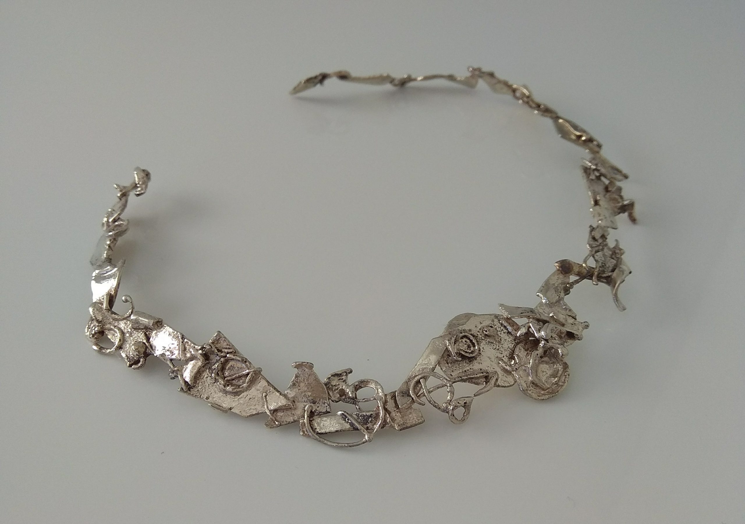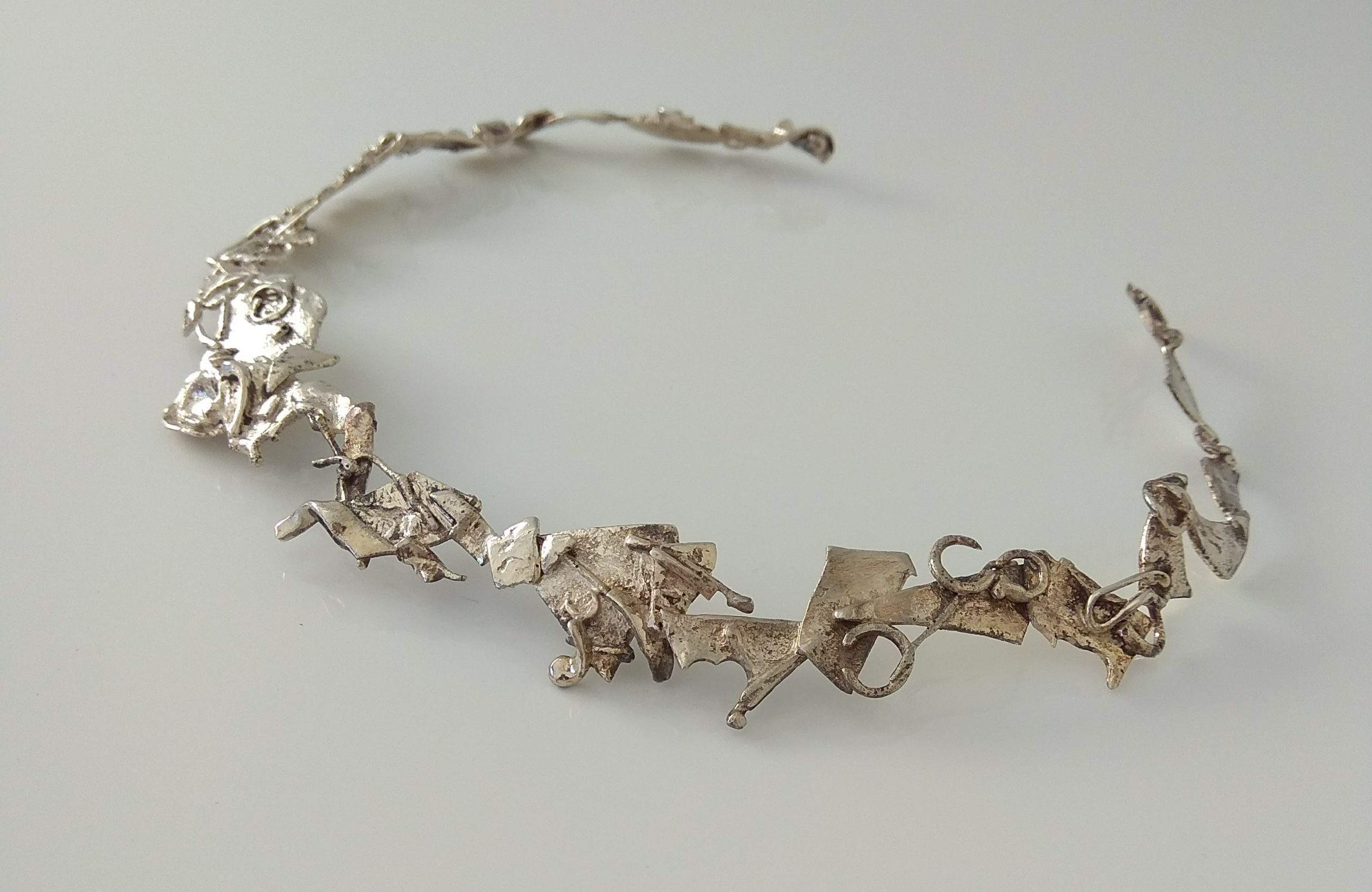 Gargantilla rígida de plata de 925 milésimas con acabado rugoso y pulido con textura.