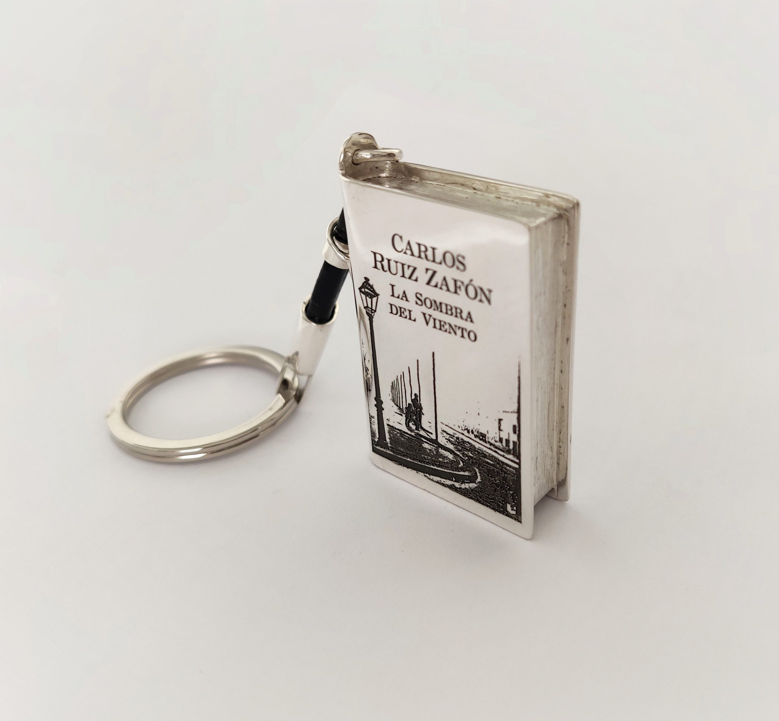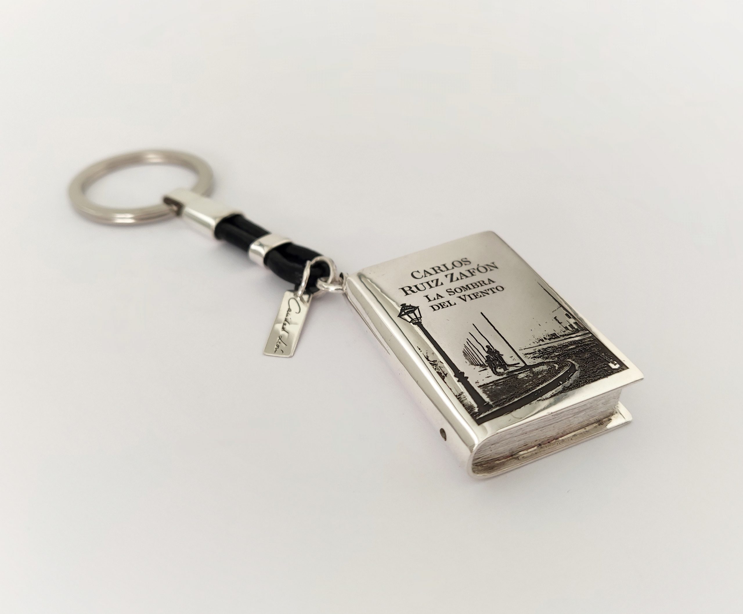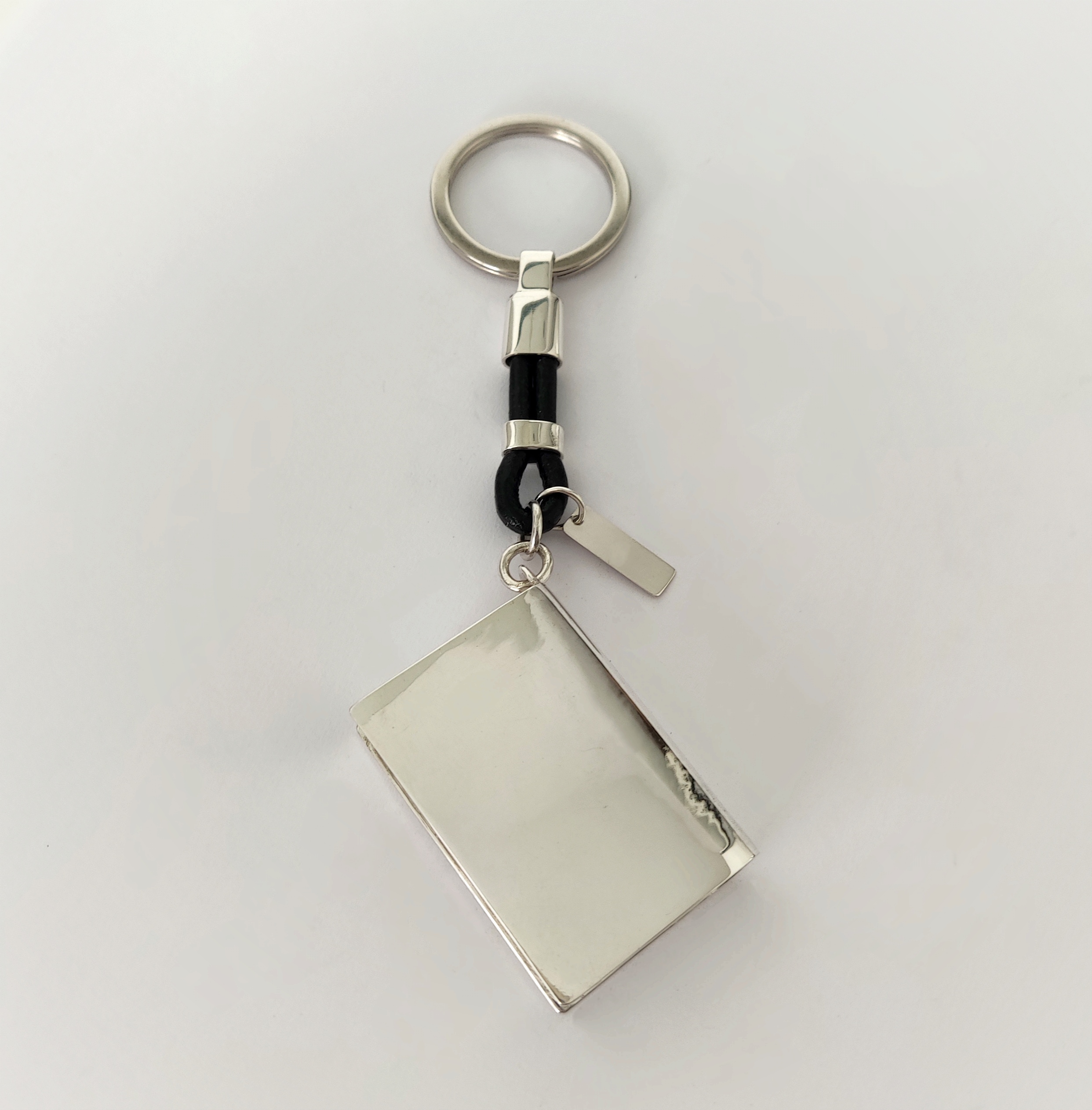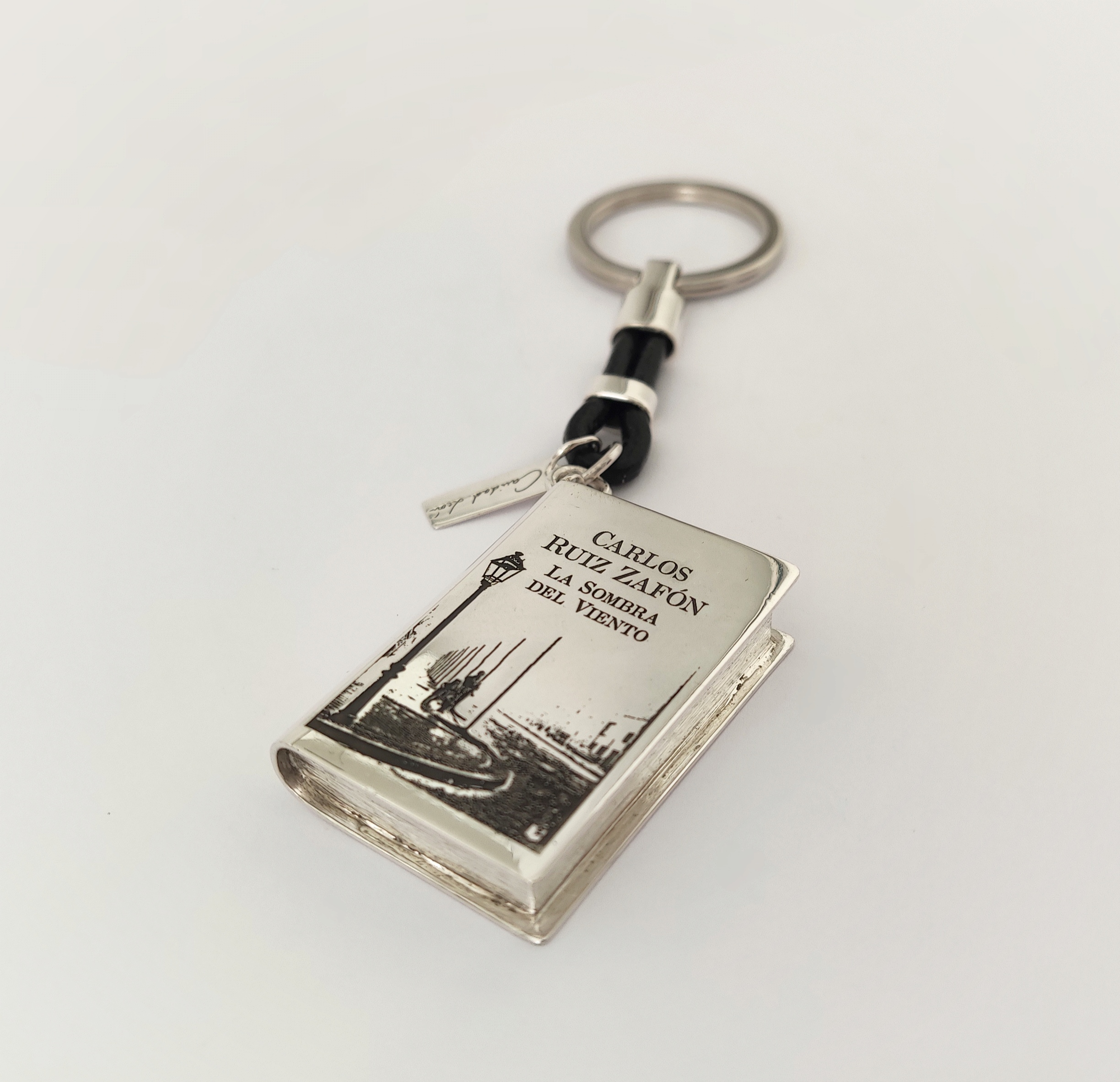 Llavero de plata de 925 milésimas , con acabado pulido efecto espejo, rayado y óxido. Anilla de acero.