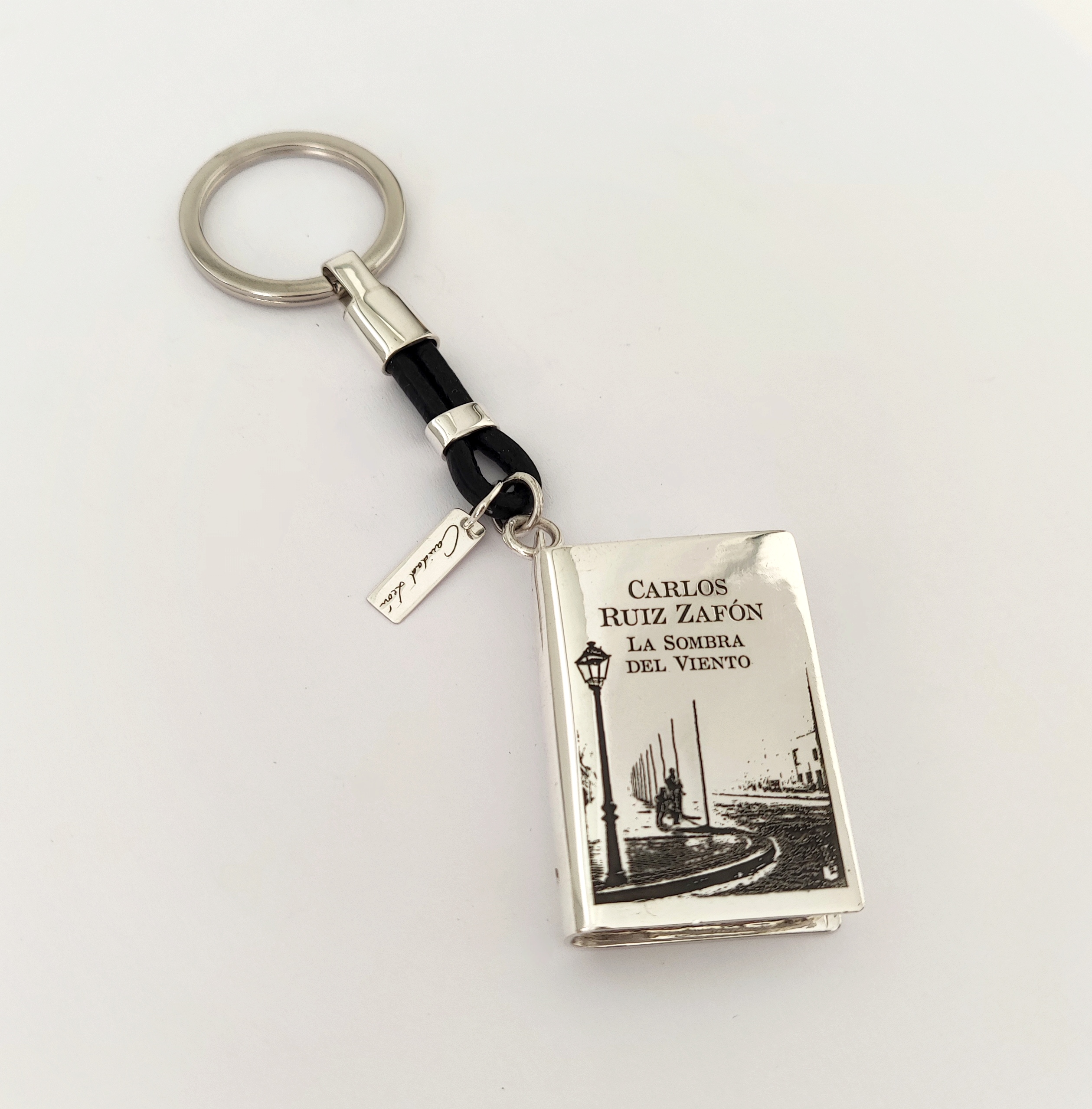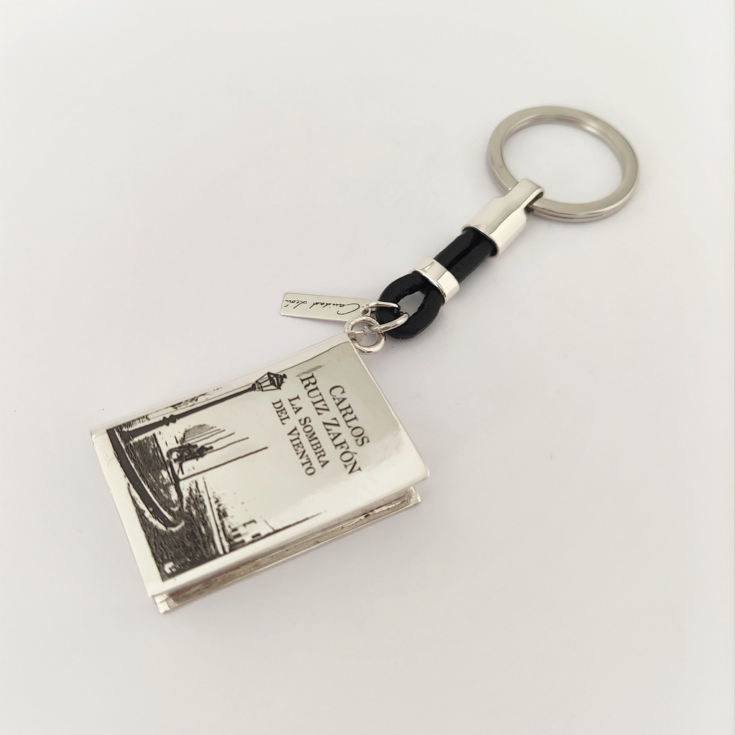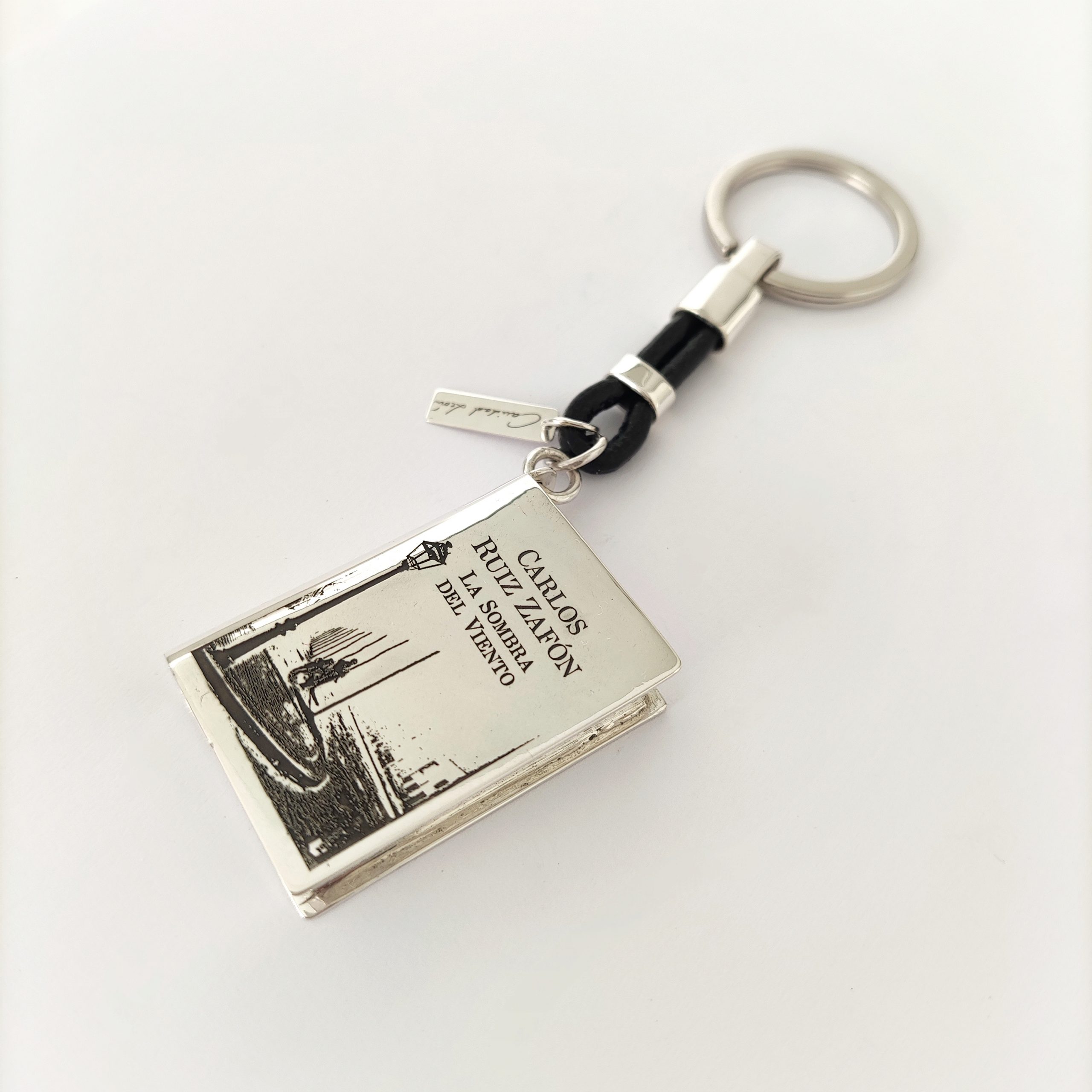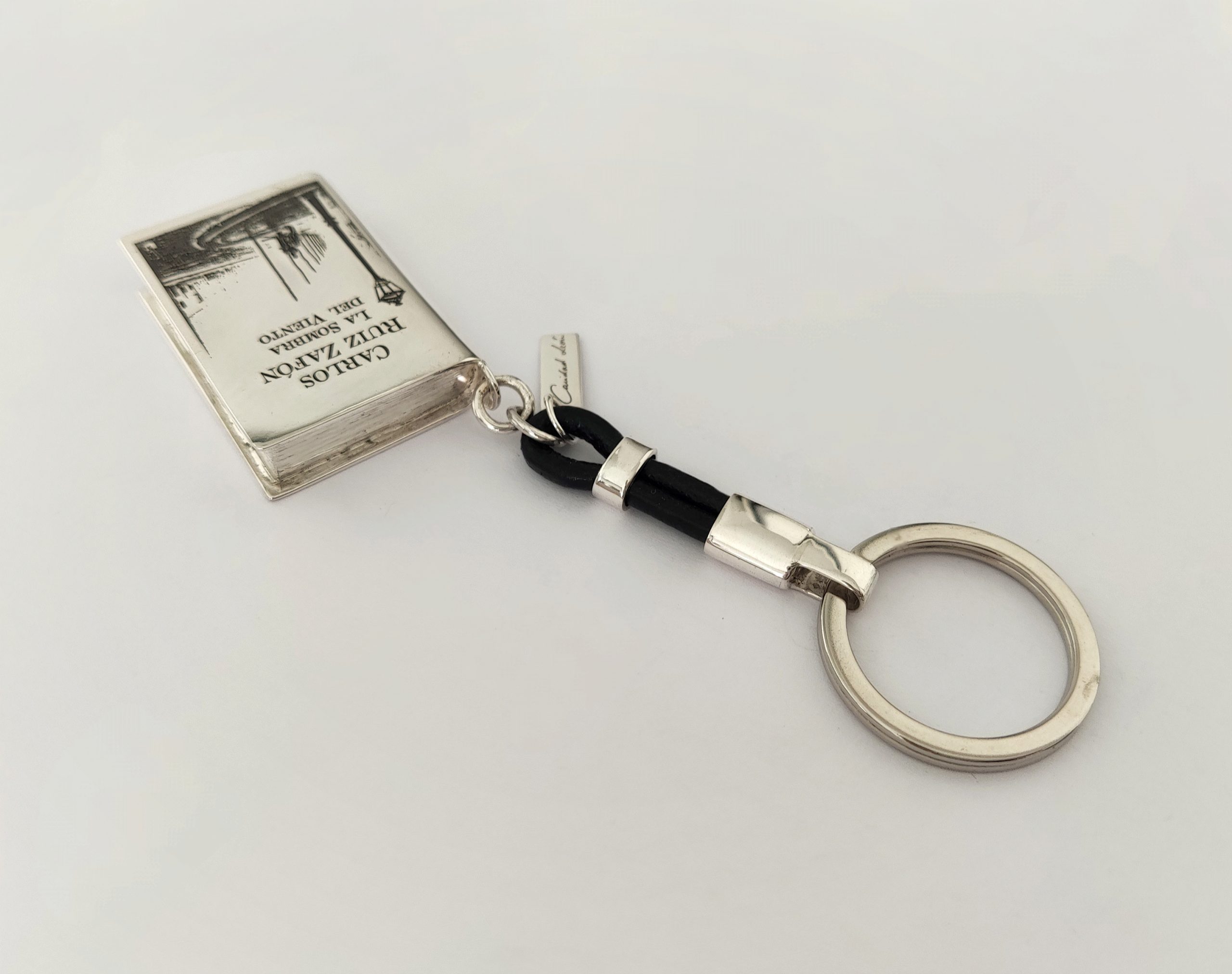 Llavero de plata de 925 milésimas , con acabado pulido efecto espejo, rayado y óxido. Anilla de acero.