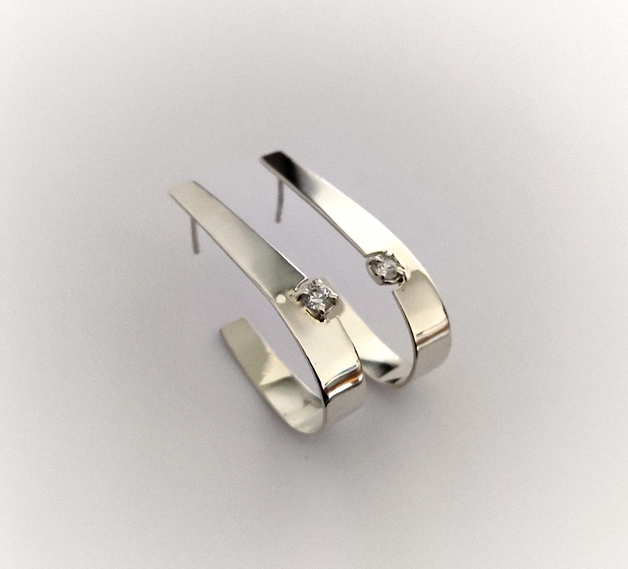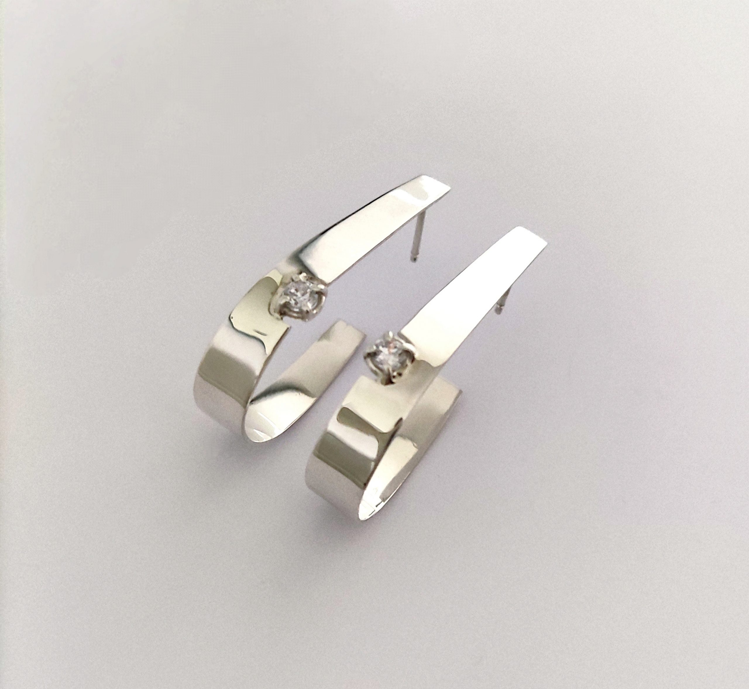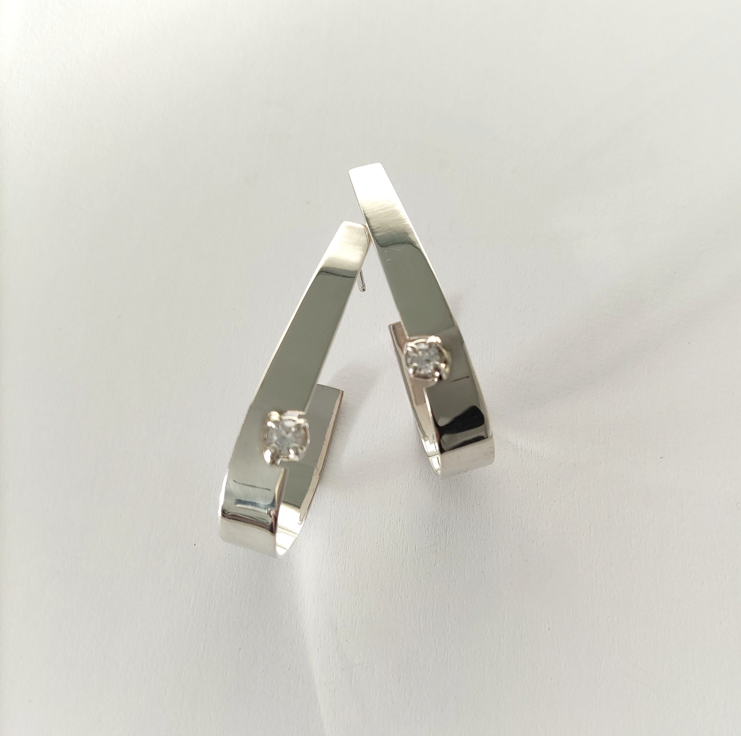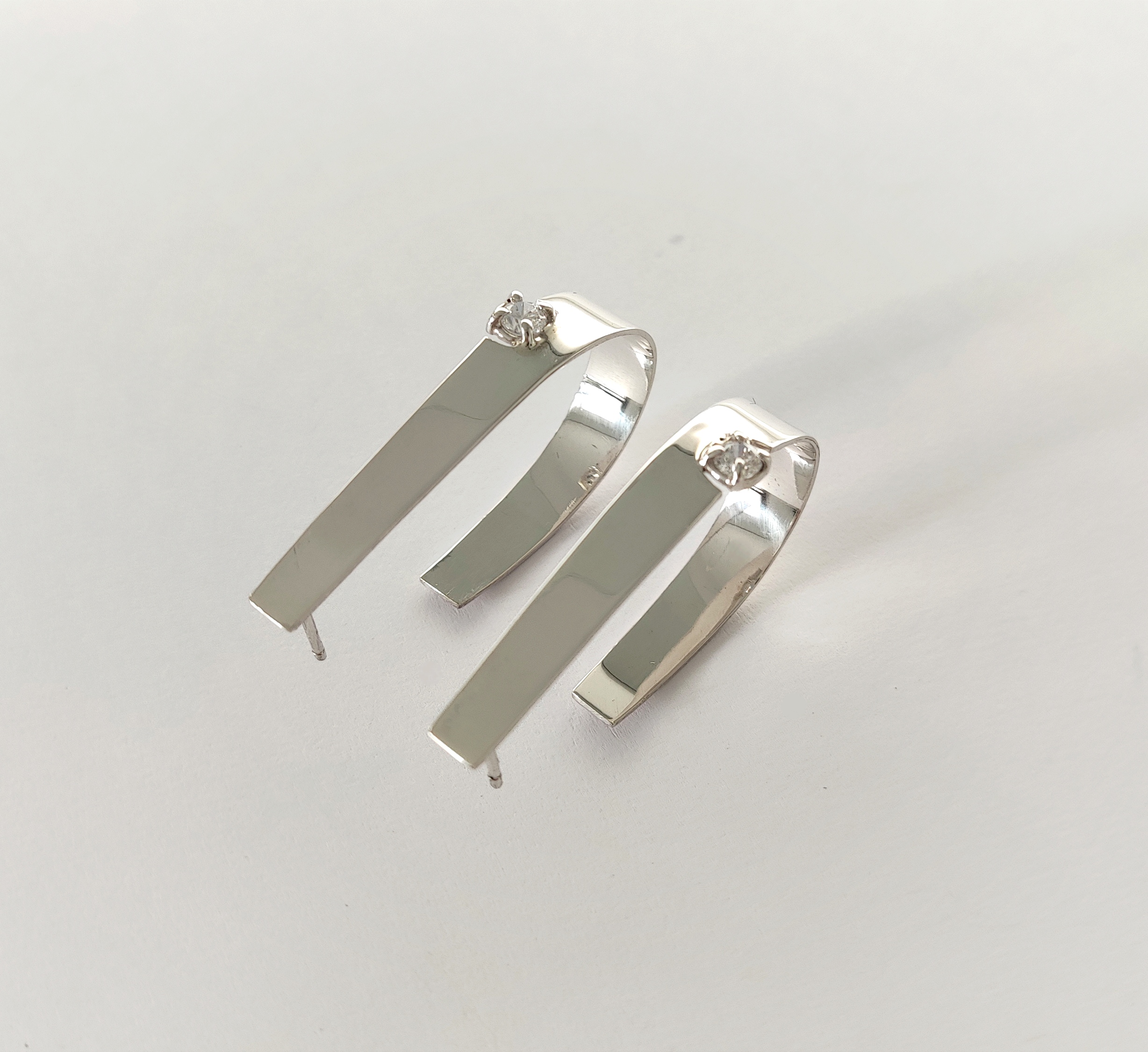 Pendientes de plata de primera ley o 925 milésimas con acabado pulido efecto espejo y circonita engastada en garra. Cierre de tuerca de presión.