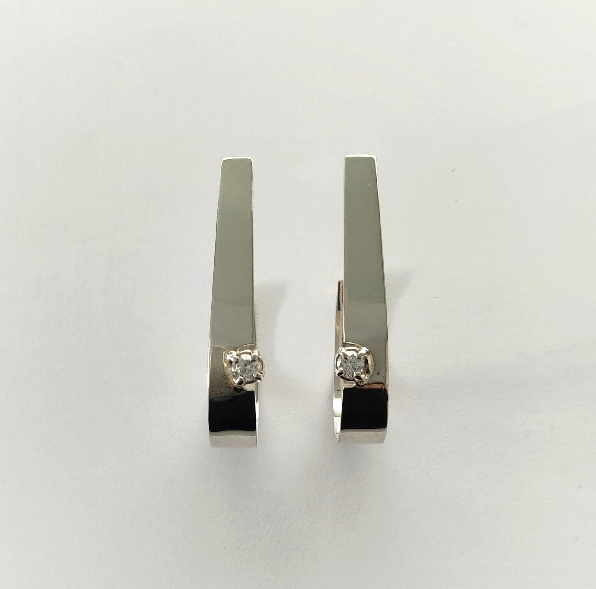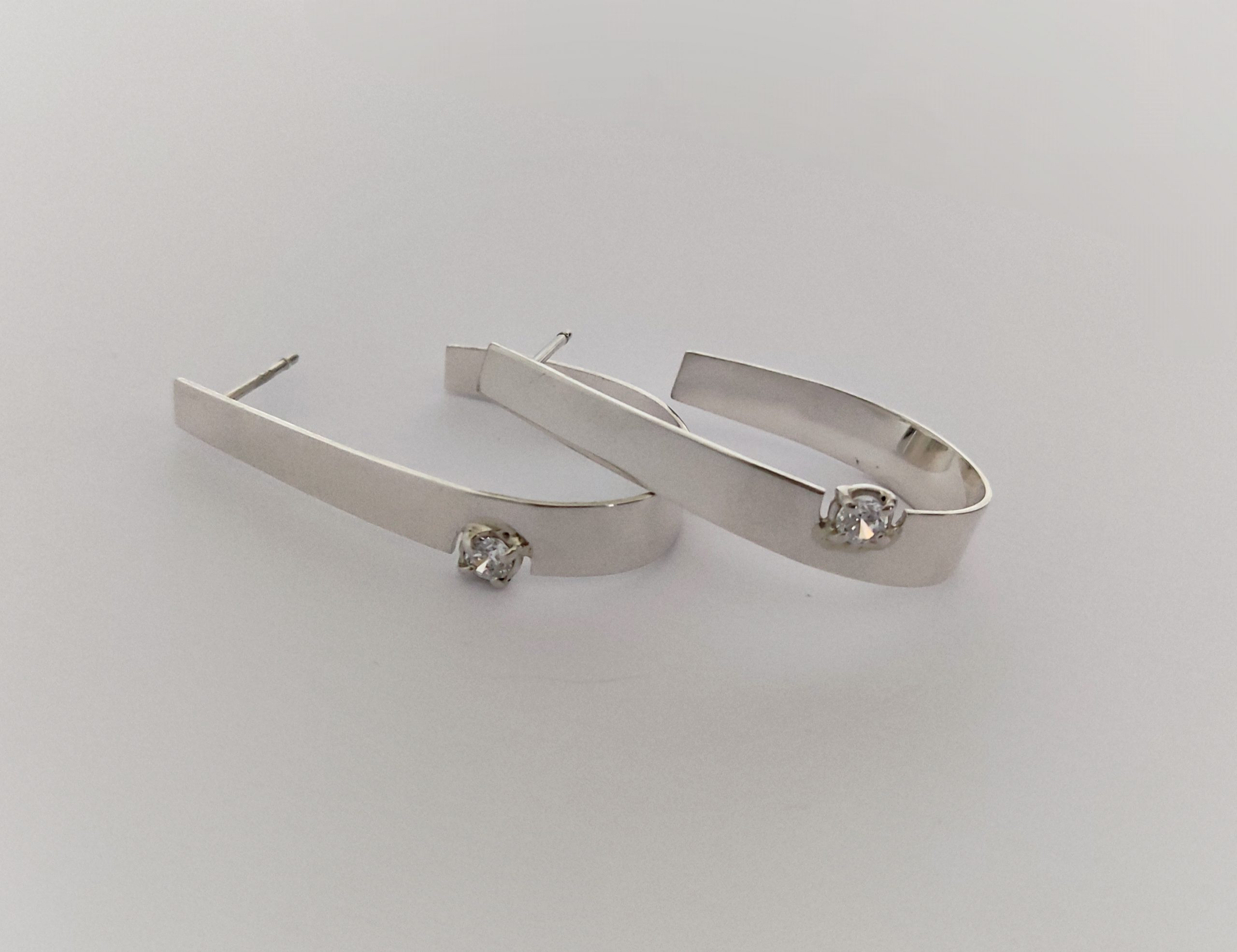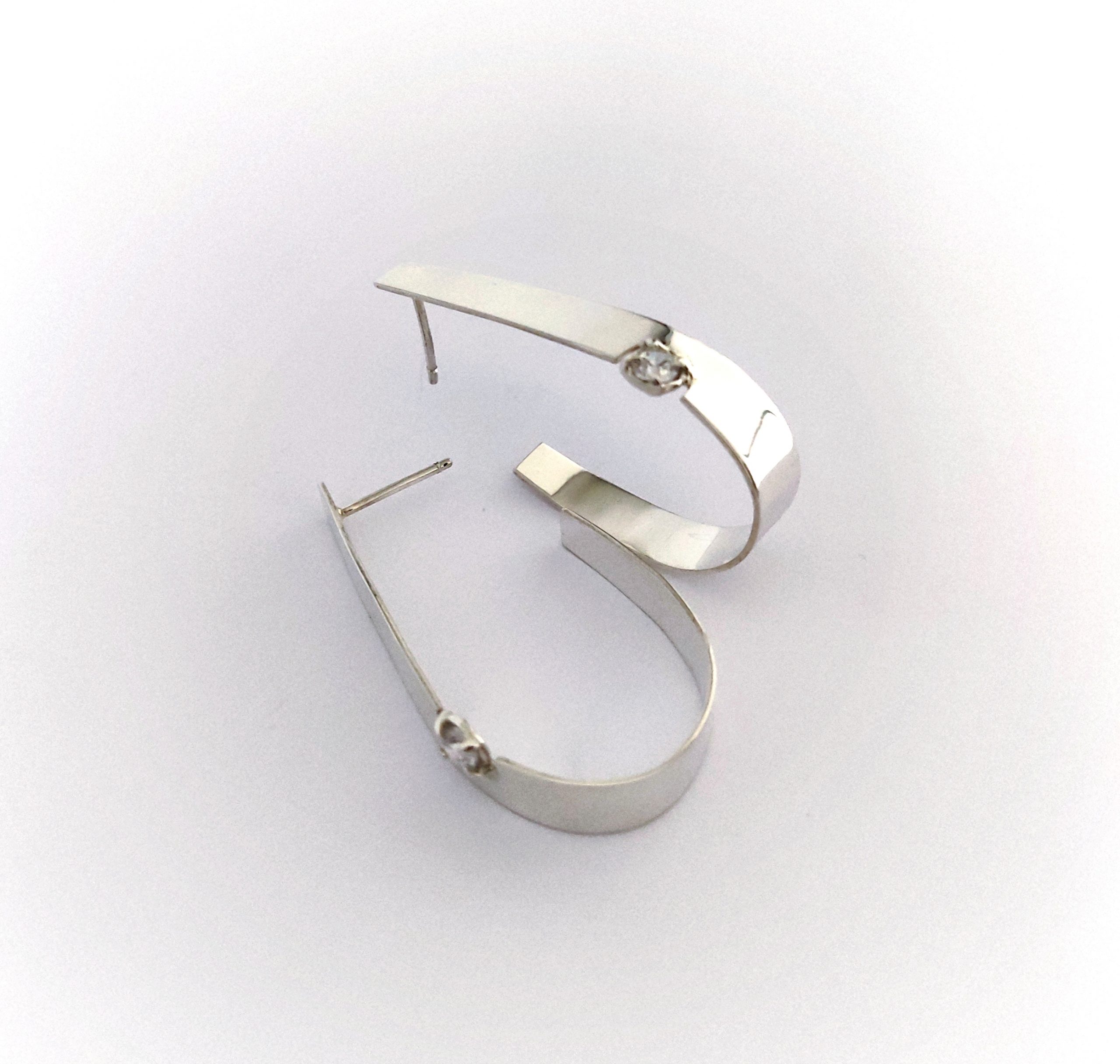 Pendientes de plata de primera ley o 925 milésimas con acabado pulido efecto espejo y circonita engastada en garra. Cierre de tuerca de presión.