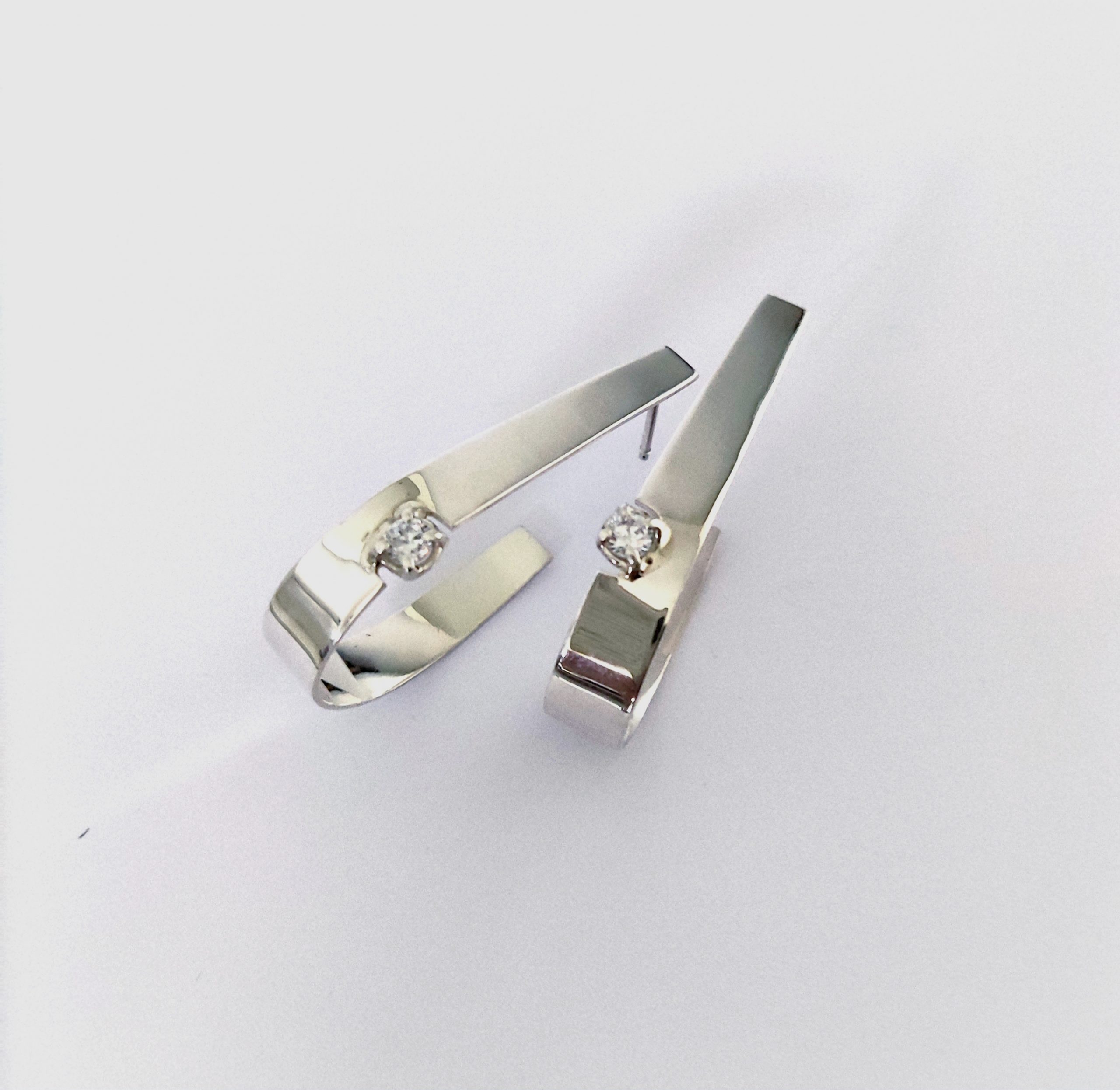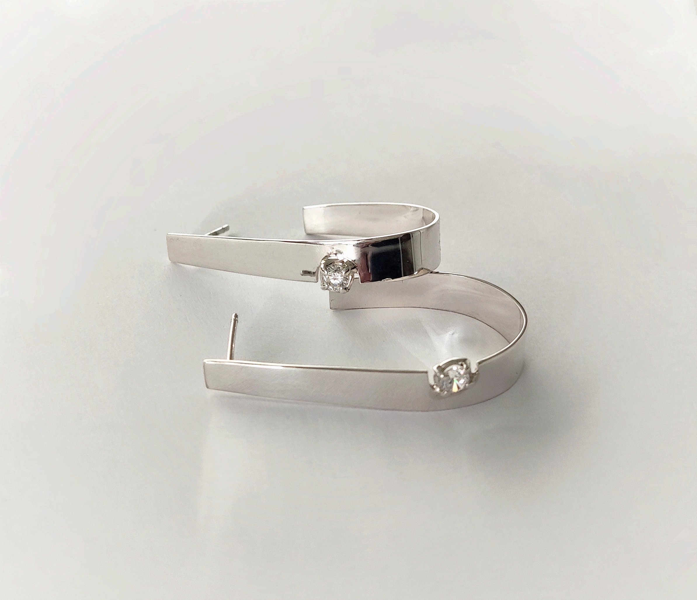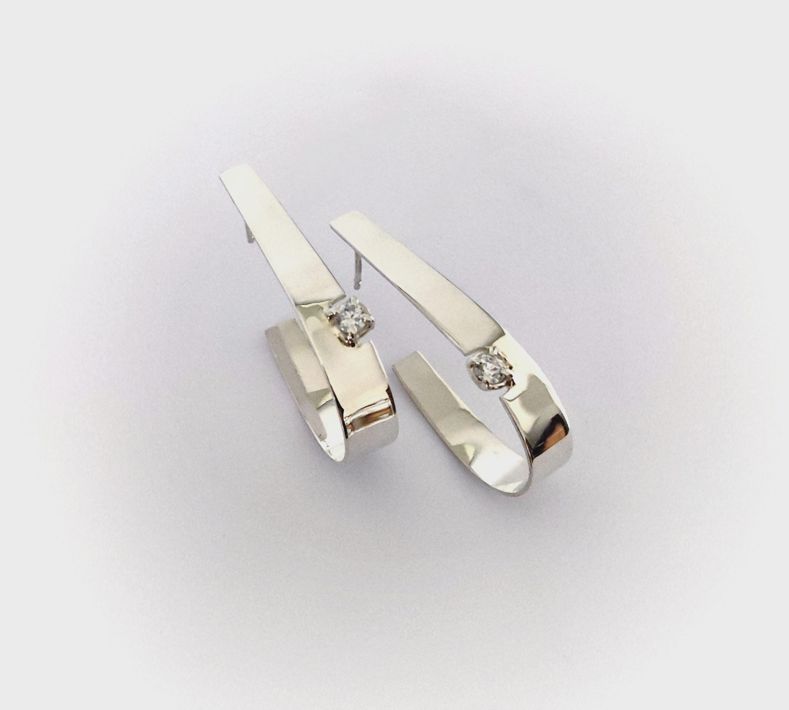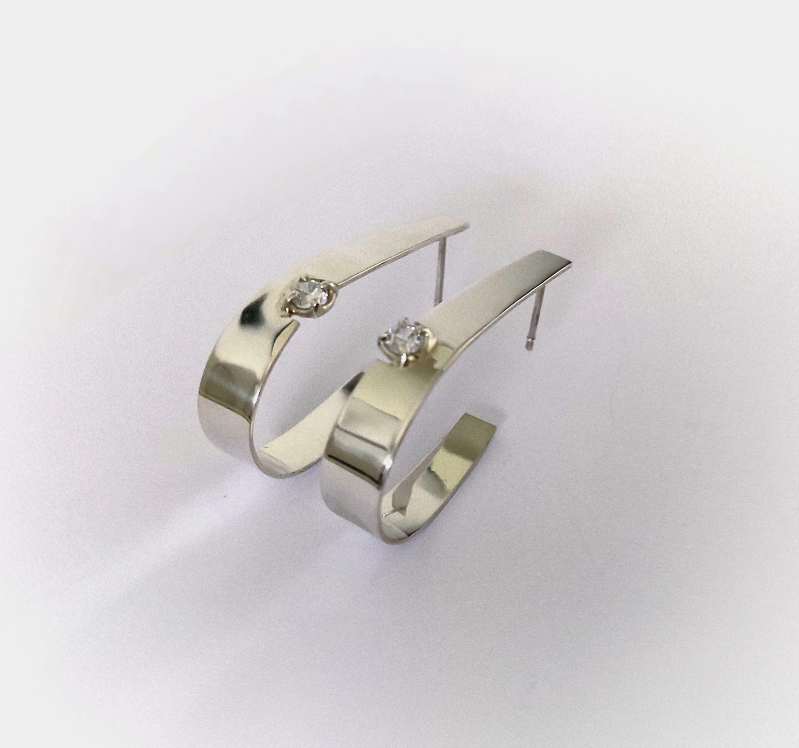 Pendientes de plata de primera ley o 925 milésimas con acabado pulido efecto espejo y circonita engastada en garra. Cierre de tuerca de presión.