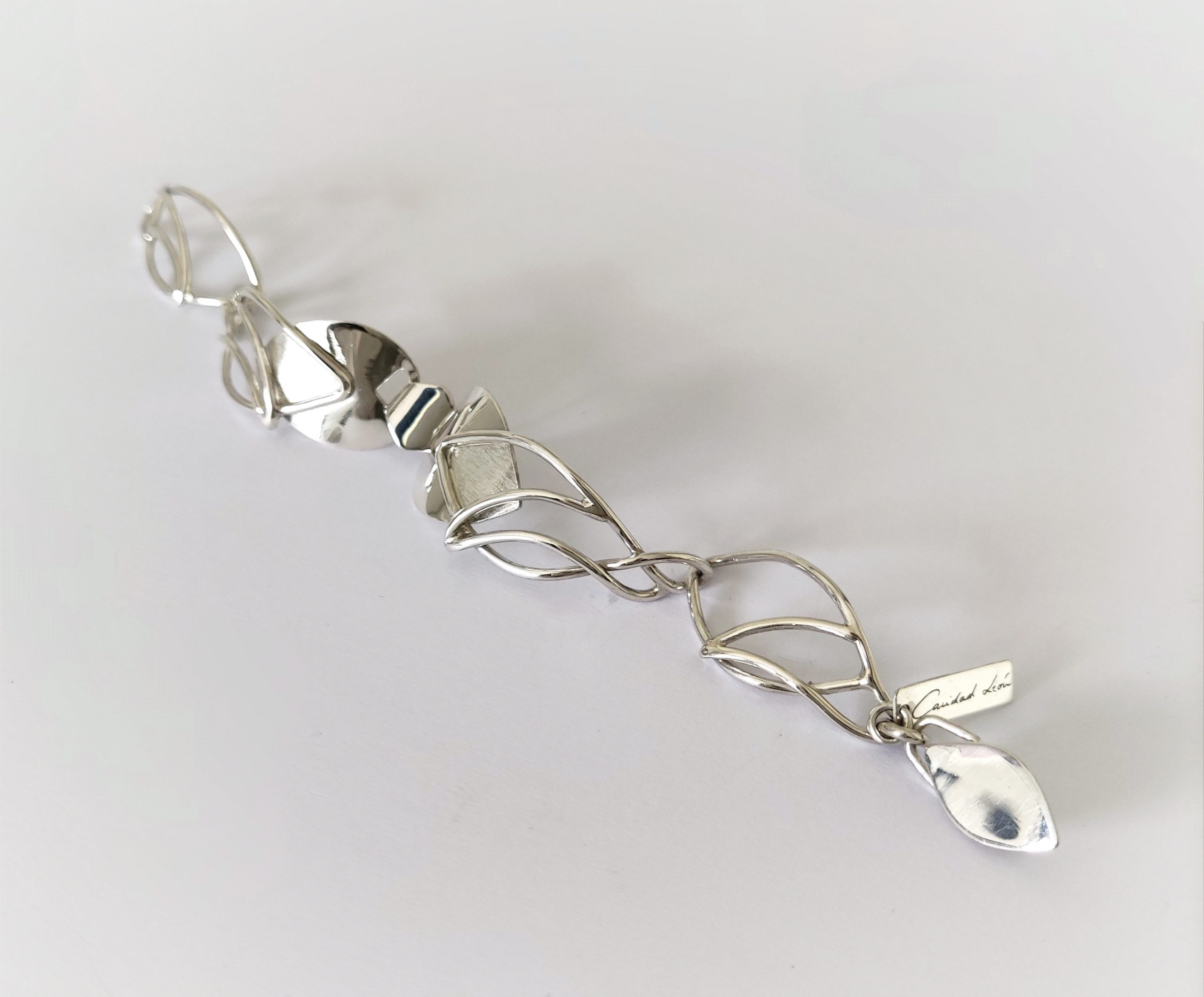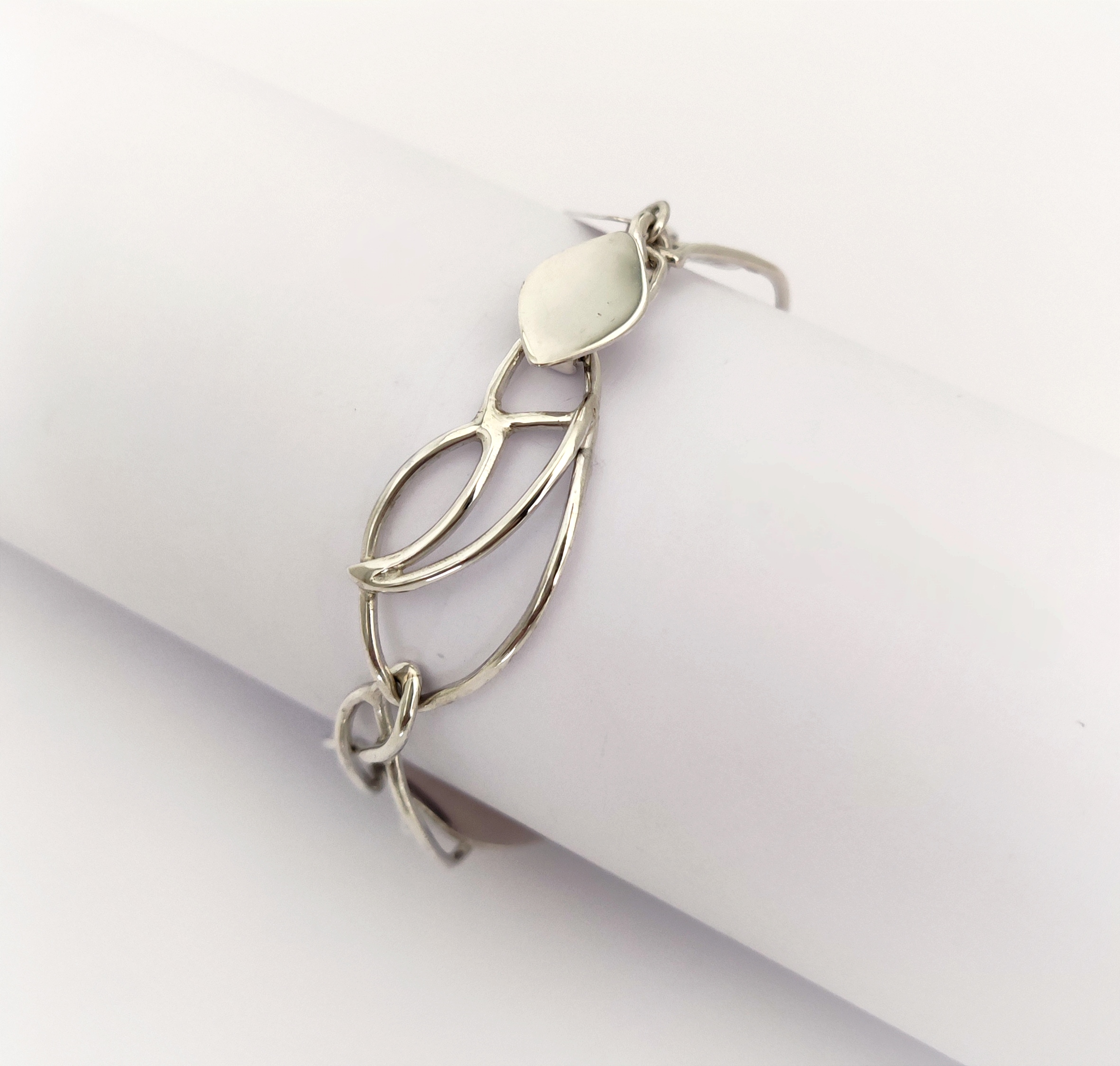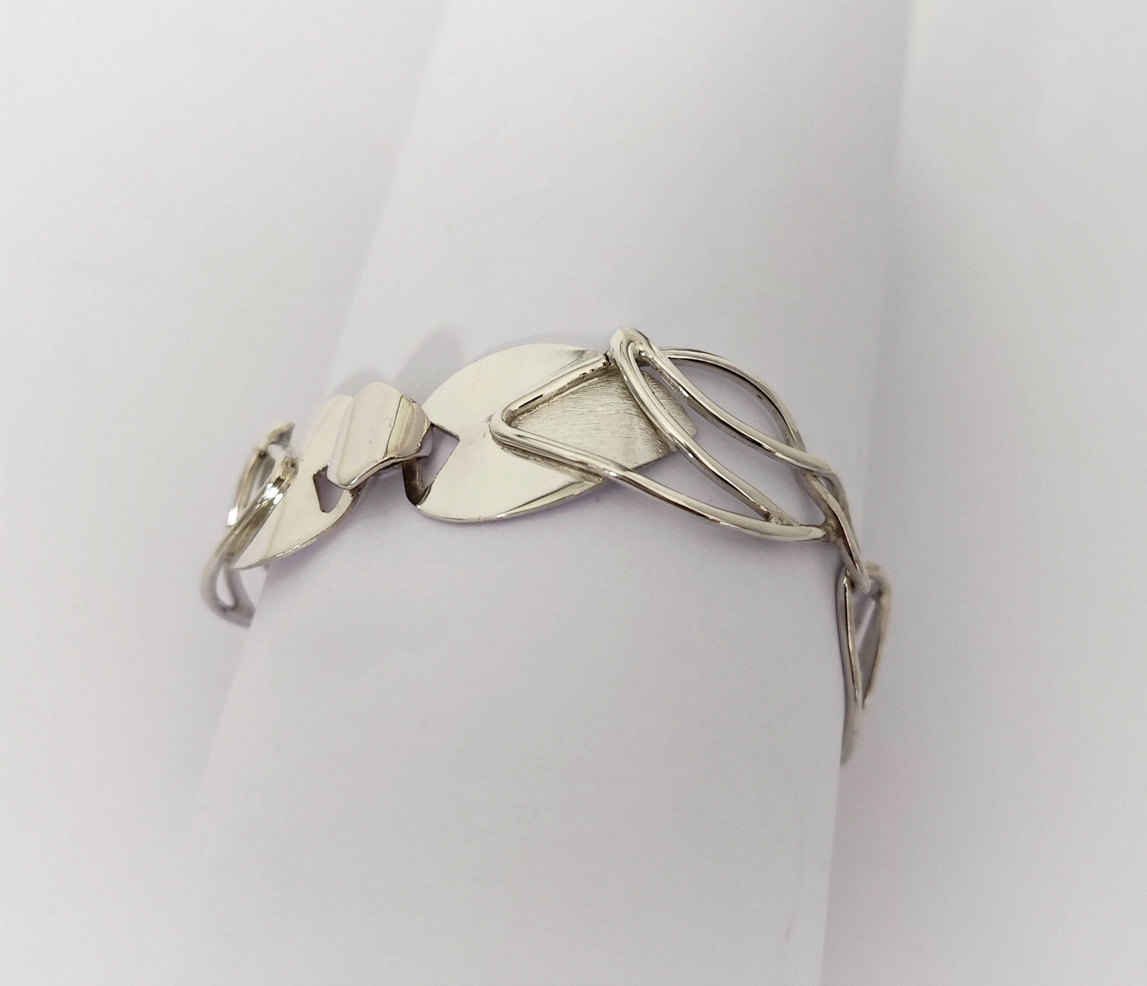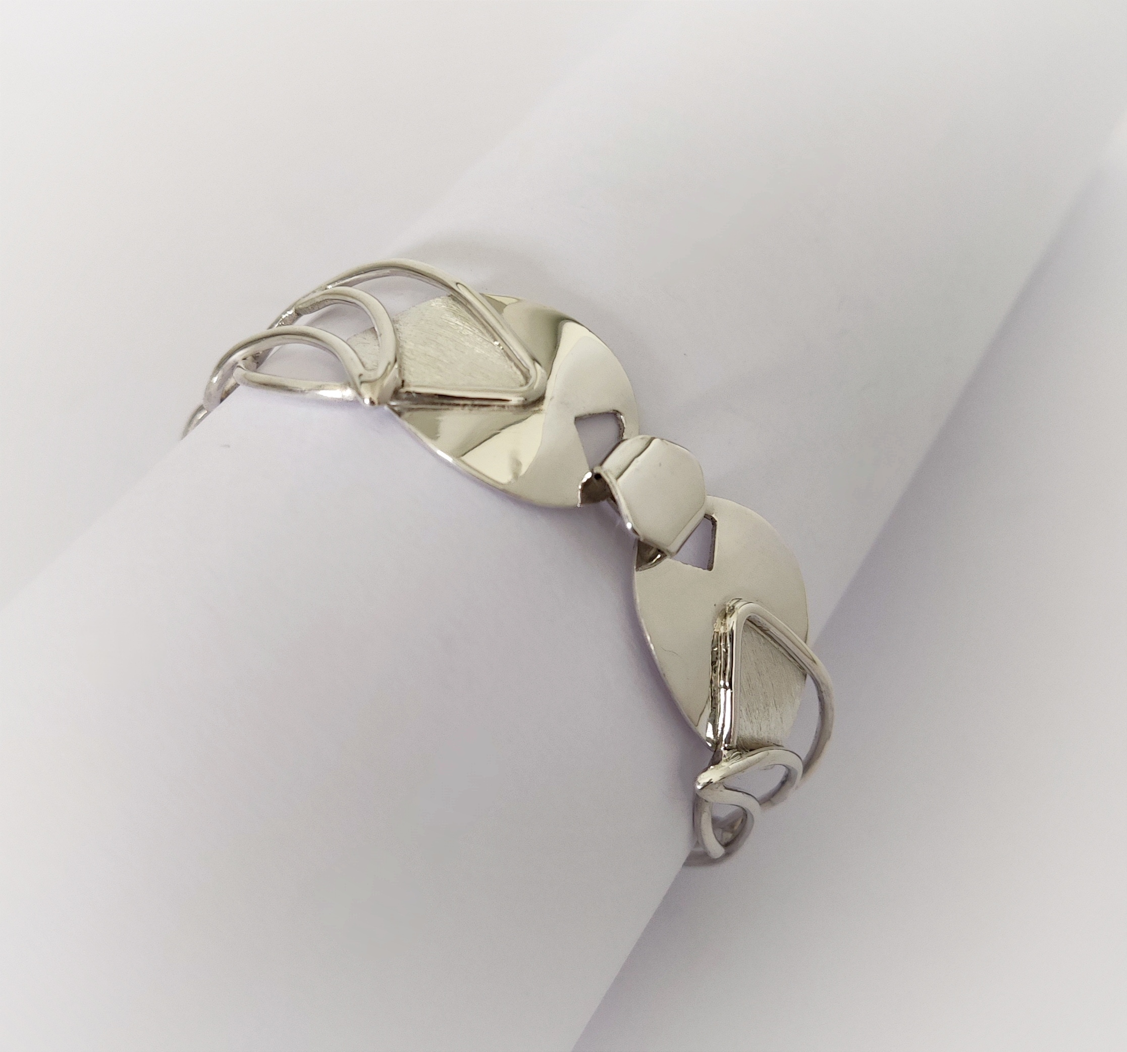 Pulsera de palta de primera ley o 925 milésimas, con acabado pulido efecto espejo y mate. Cierre de click.