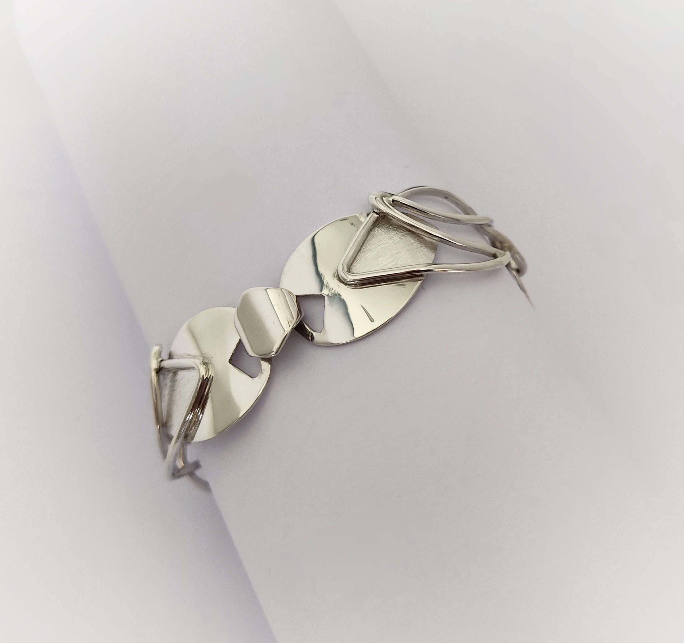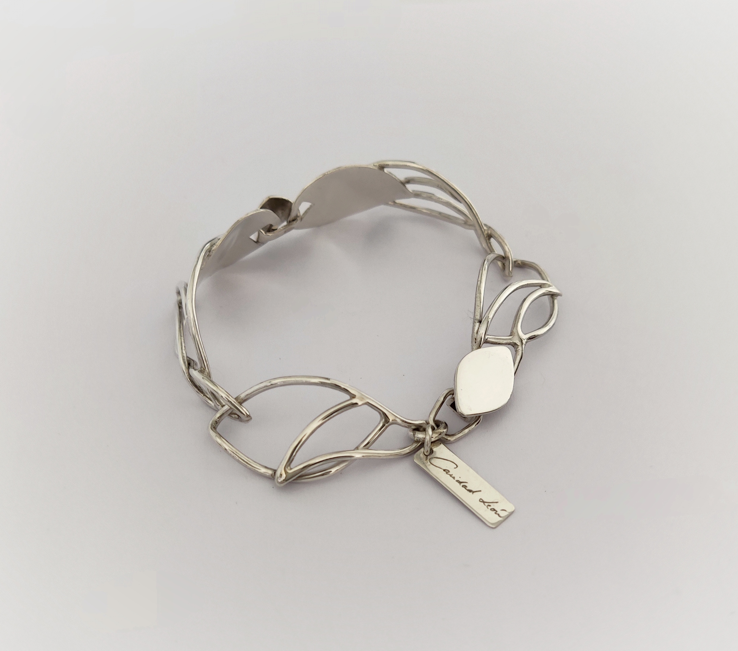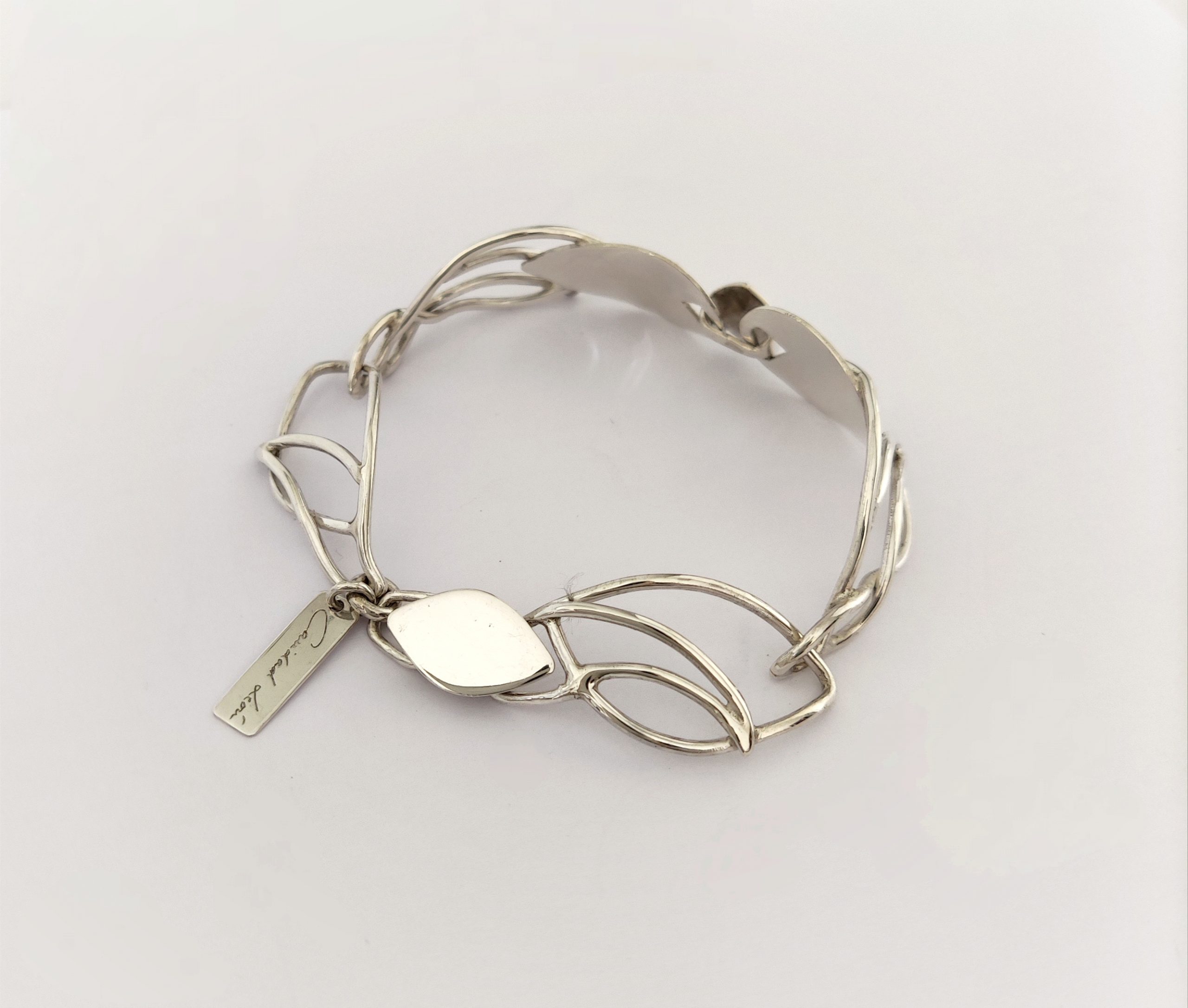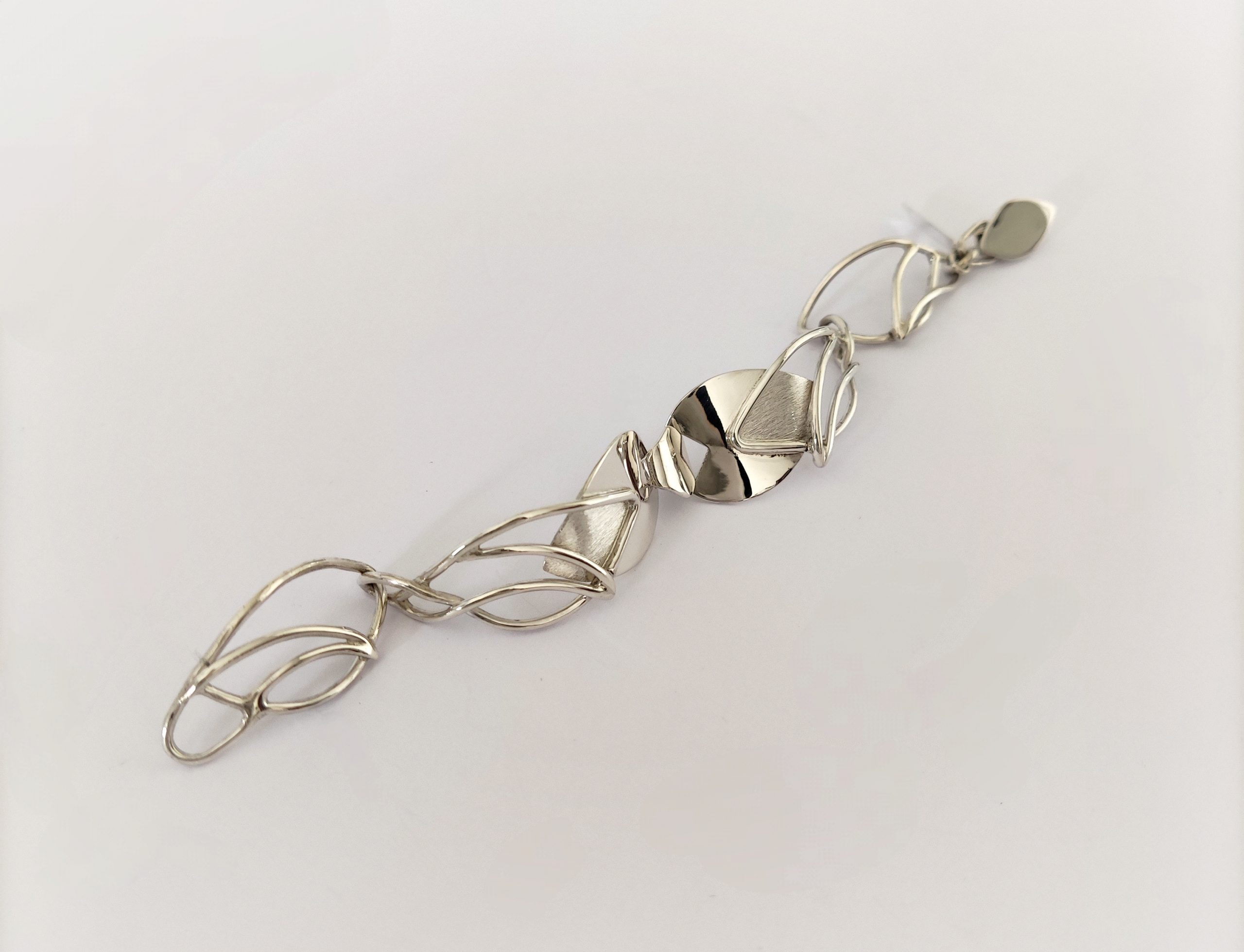 Pulsera de palta de primera ley o 925 milésimas, con acabado pulido efecto espejo y mate. Cierre de click.