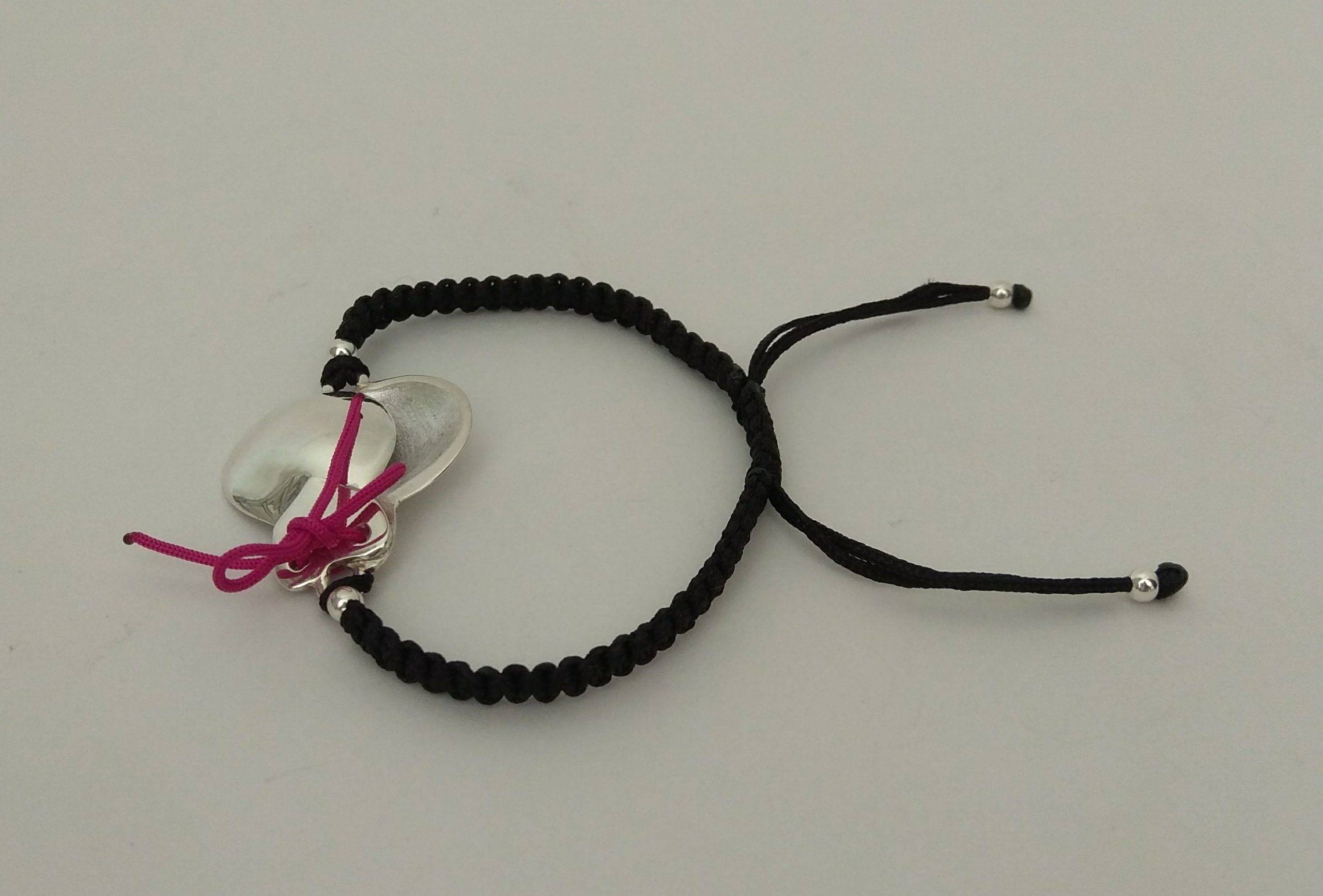 Pulsera tejida con hilo de nylon y plata de 925 milésimas con acabado pulido efecto espejo.
