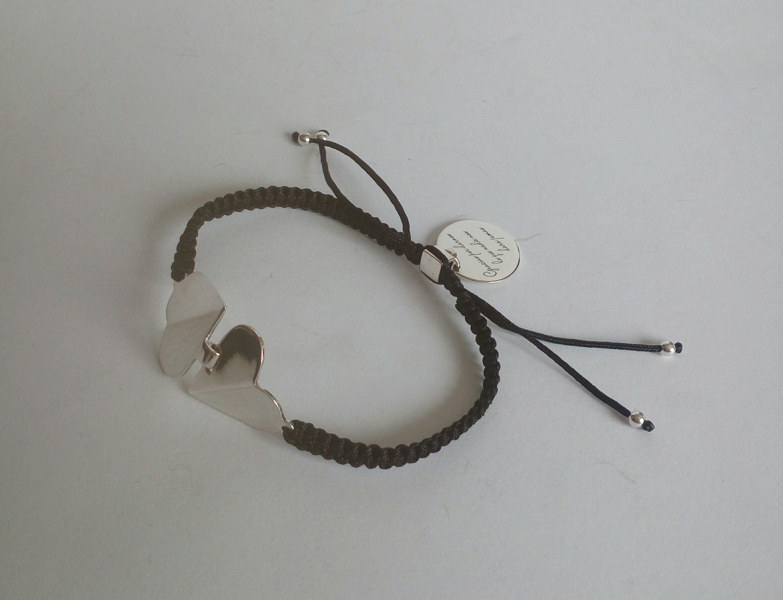 Pulsera tejida en nylon con plata de 925 milésimas y acabado pulido efecto espejo.