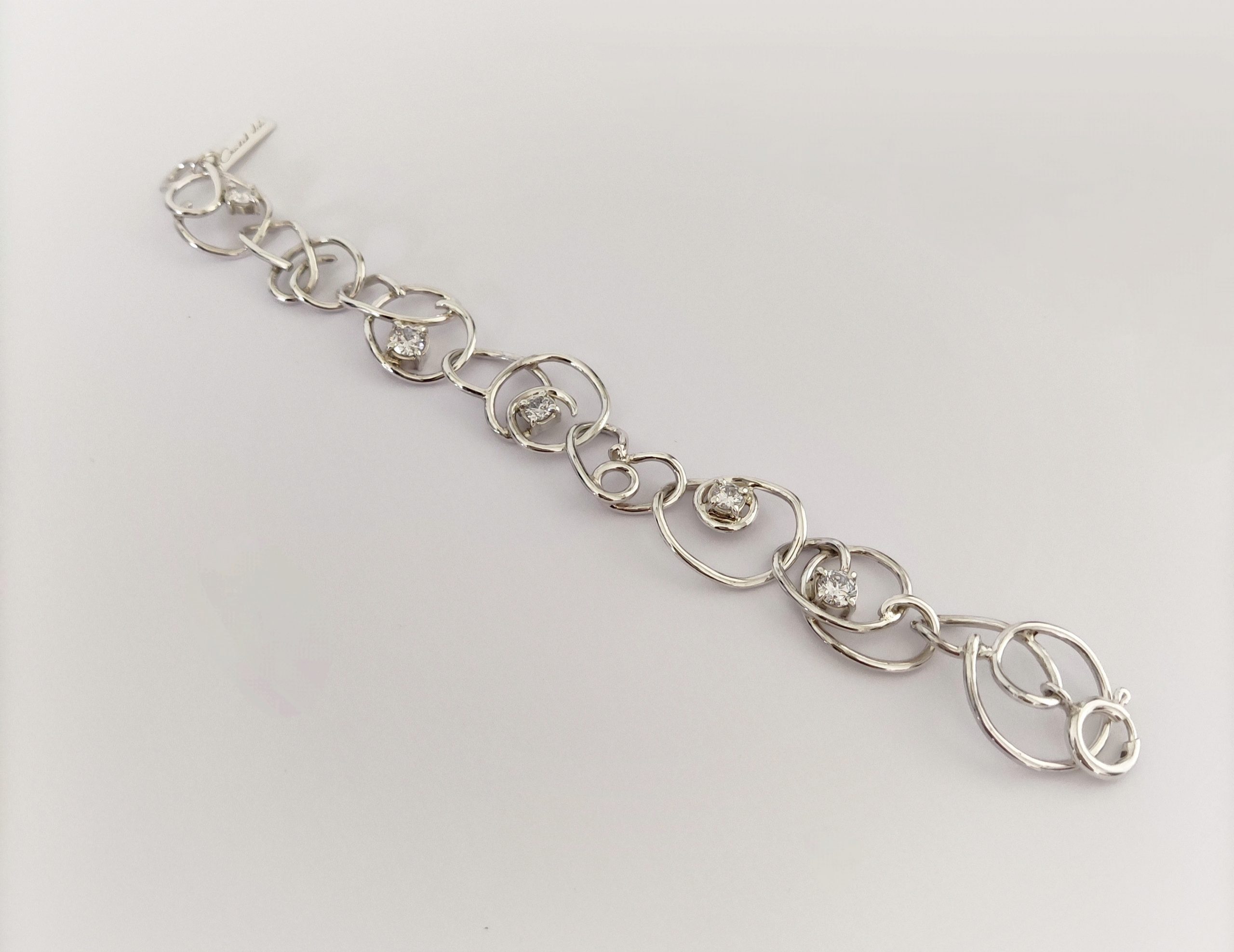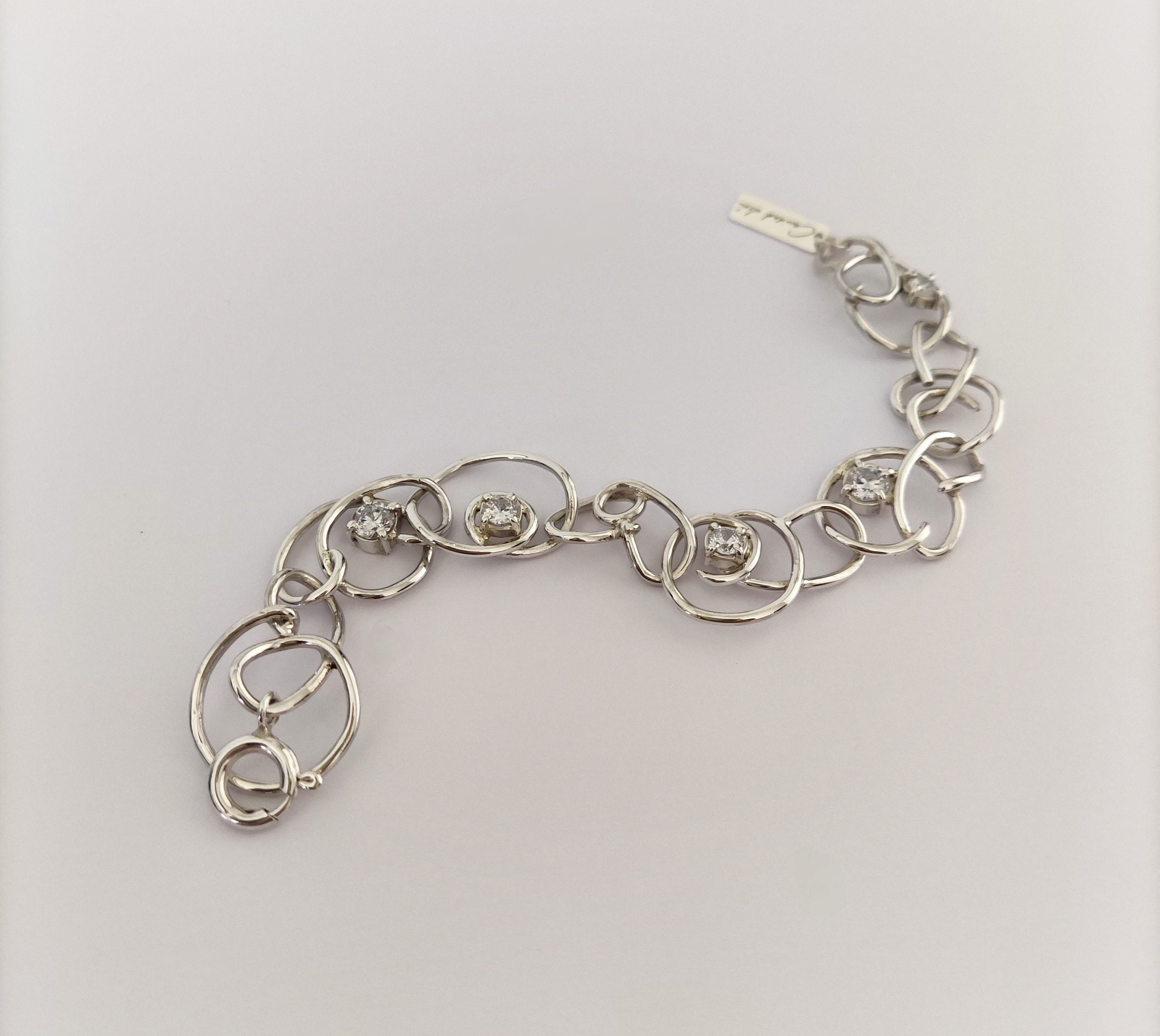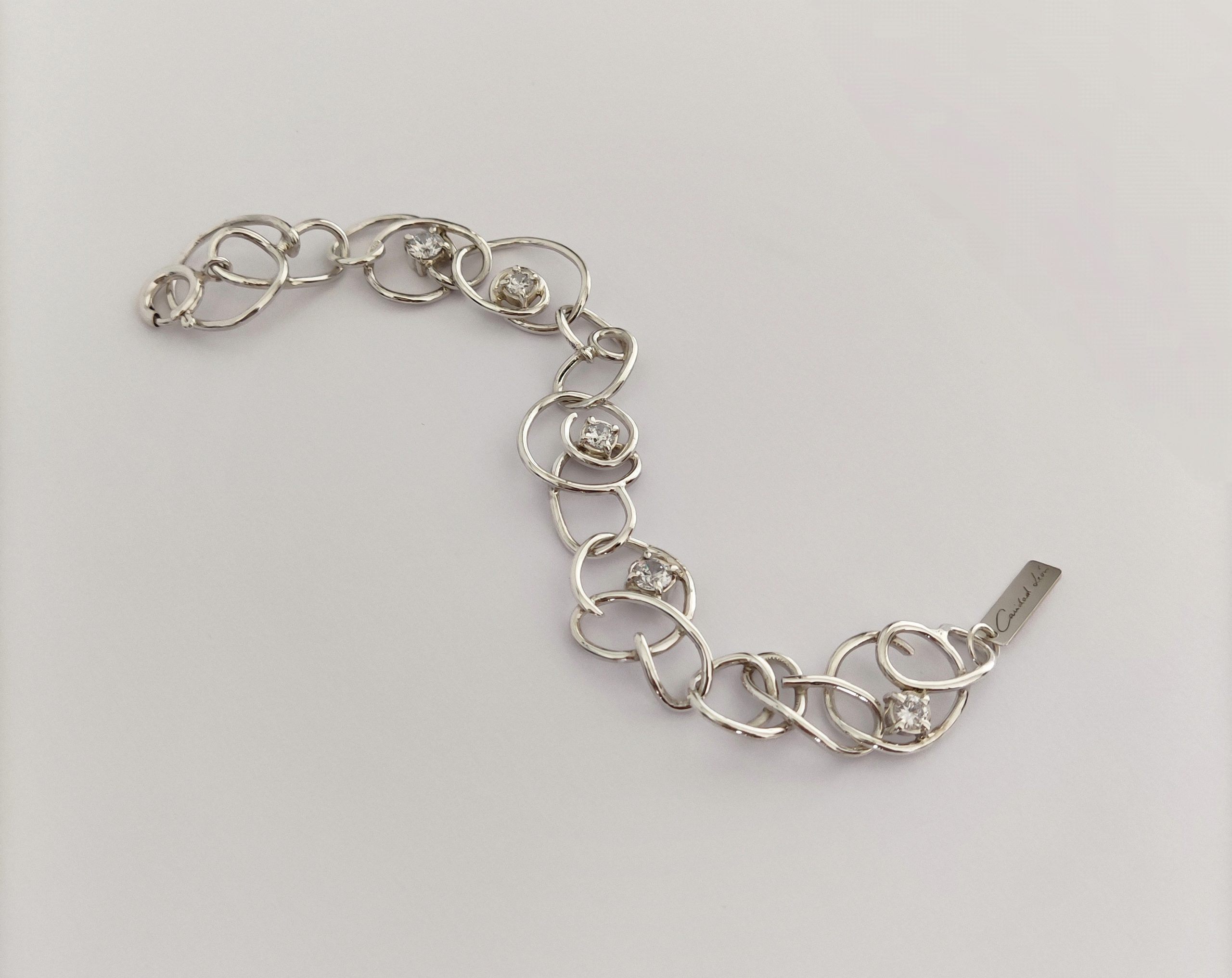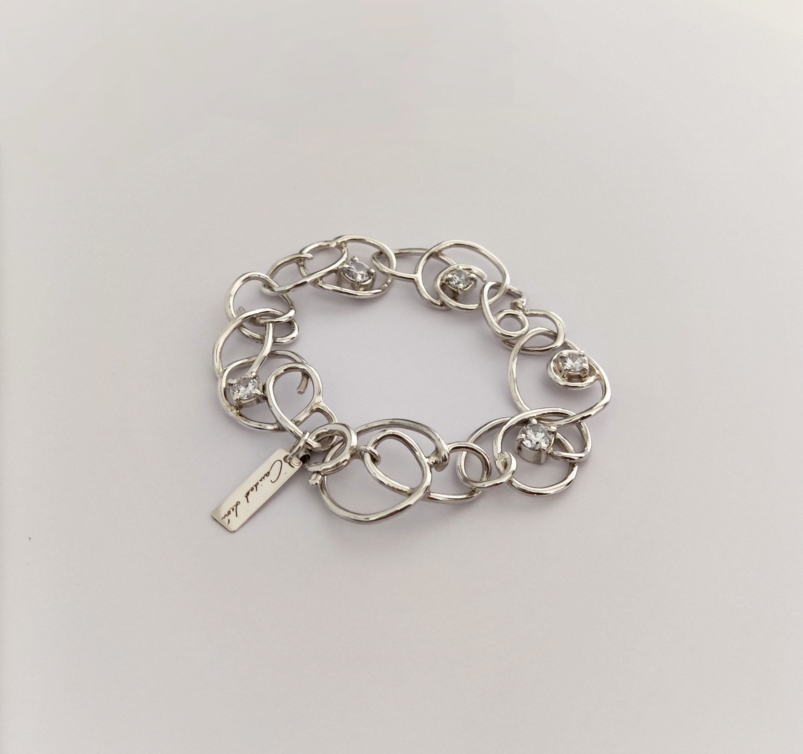 Pulsera de plata de primera ley o 925 milésimas, con acabado pulido efecto espejo y circonitas engastadas en garra.