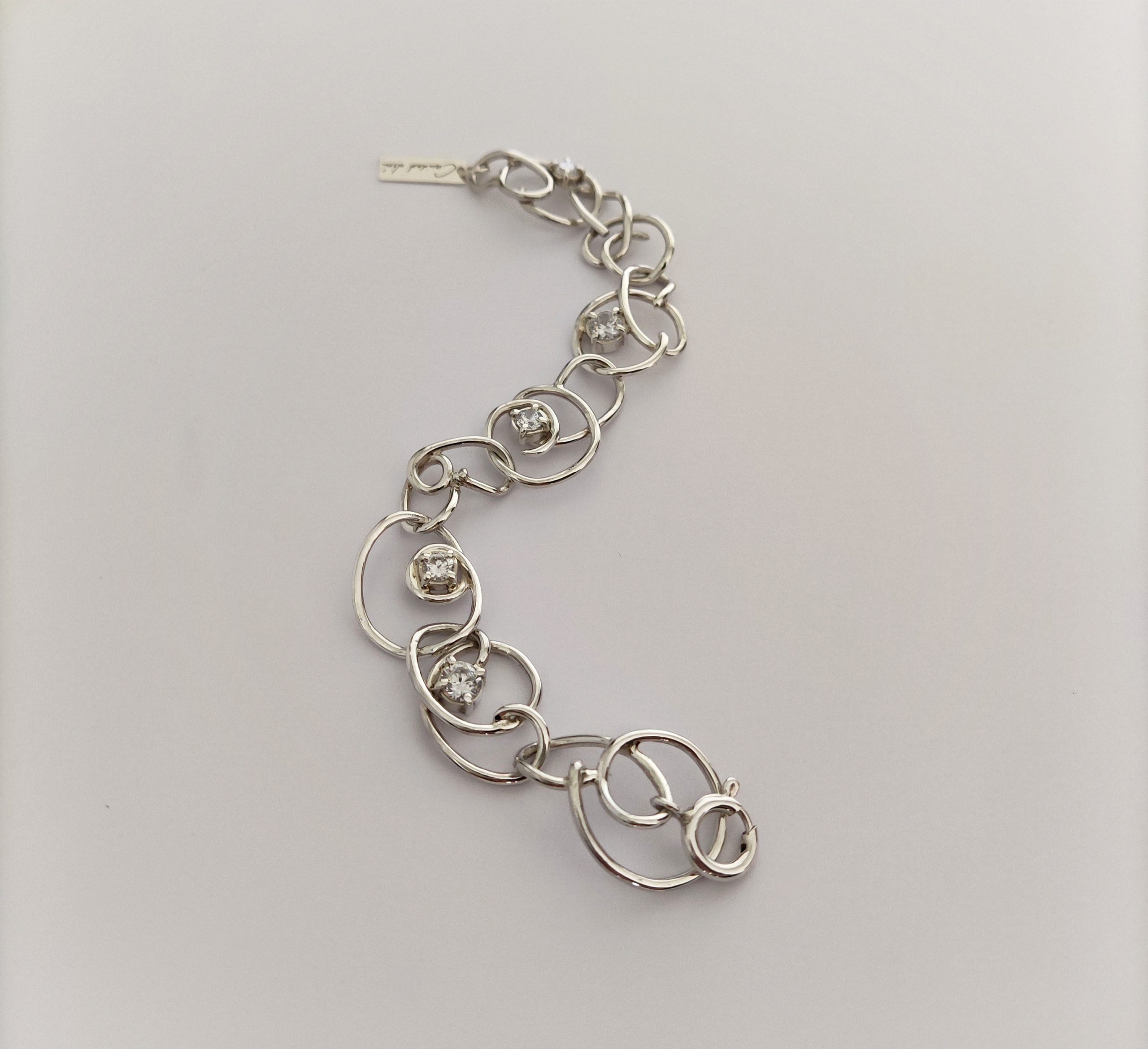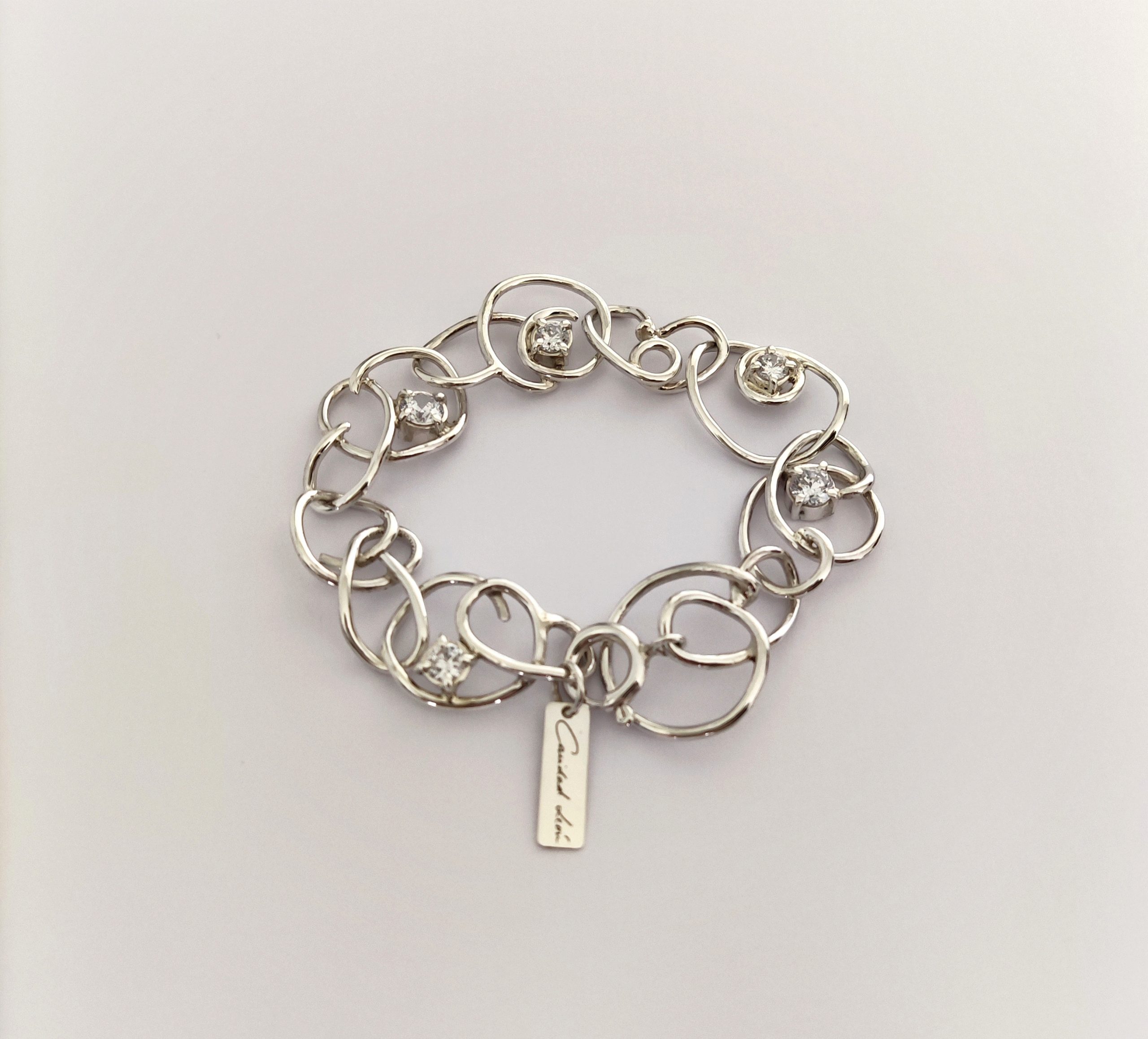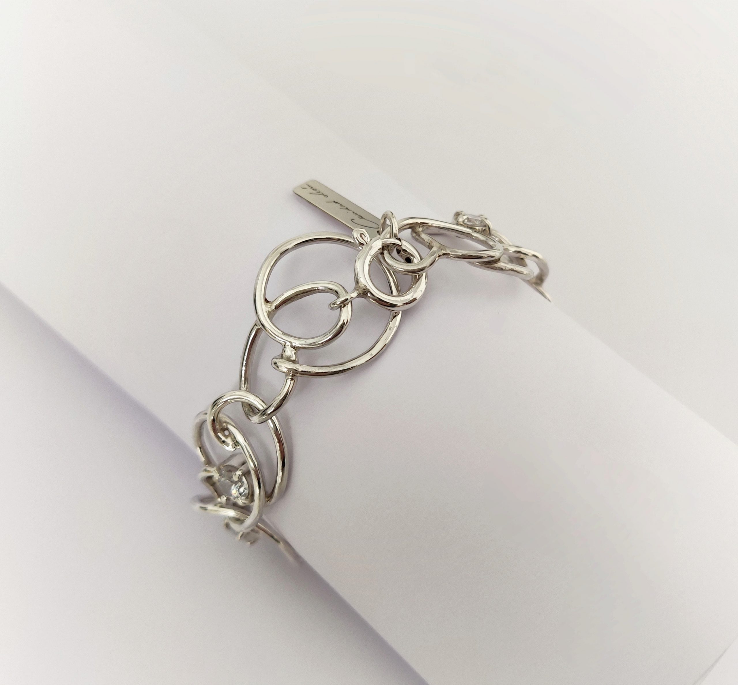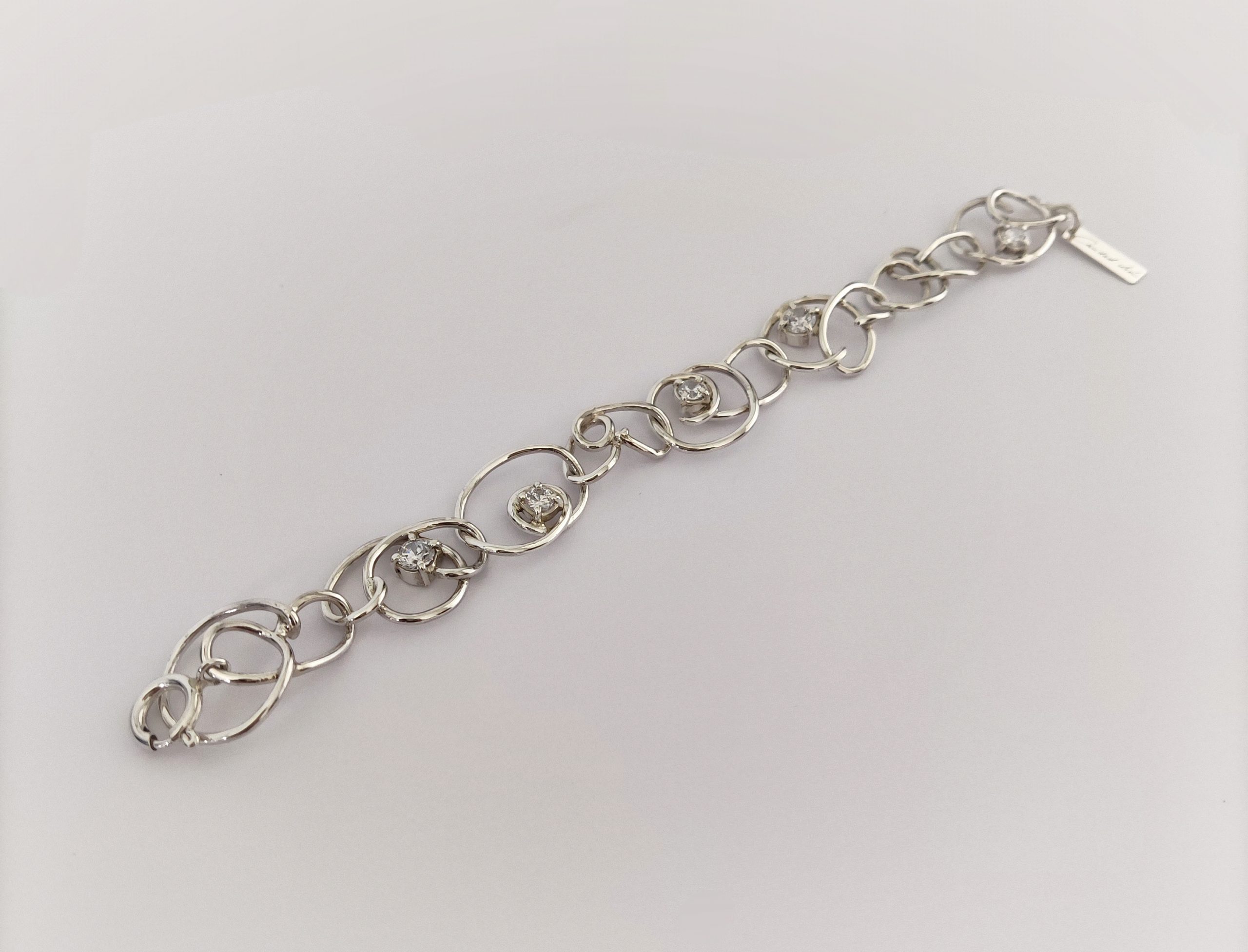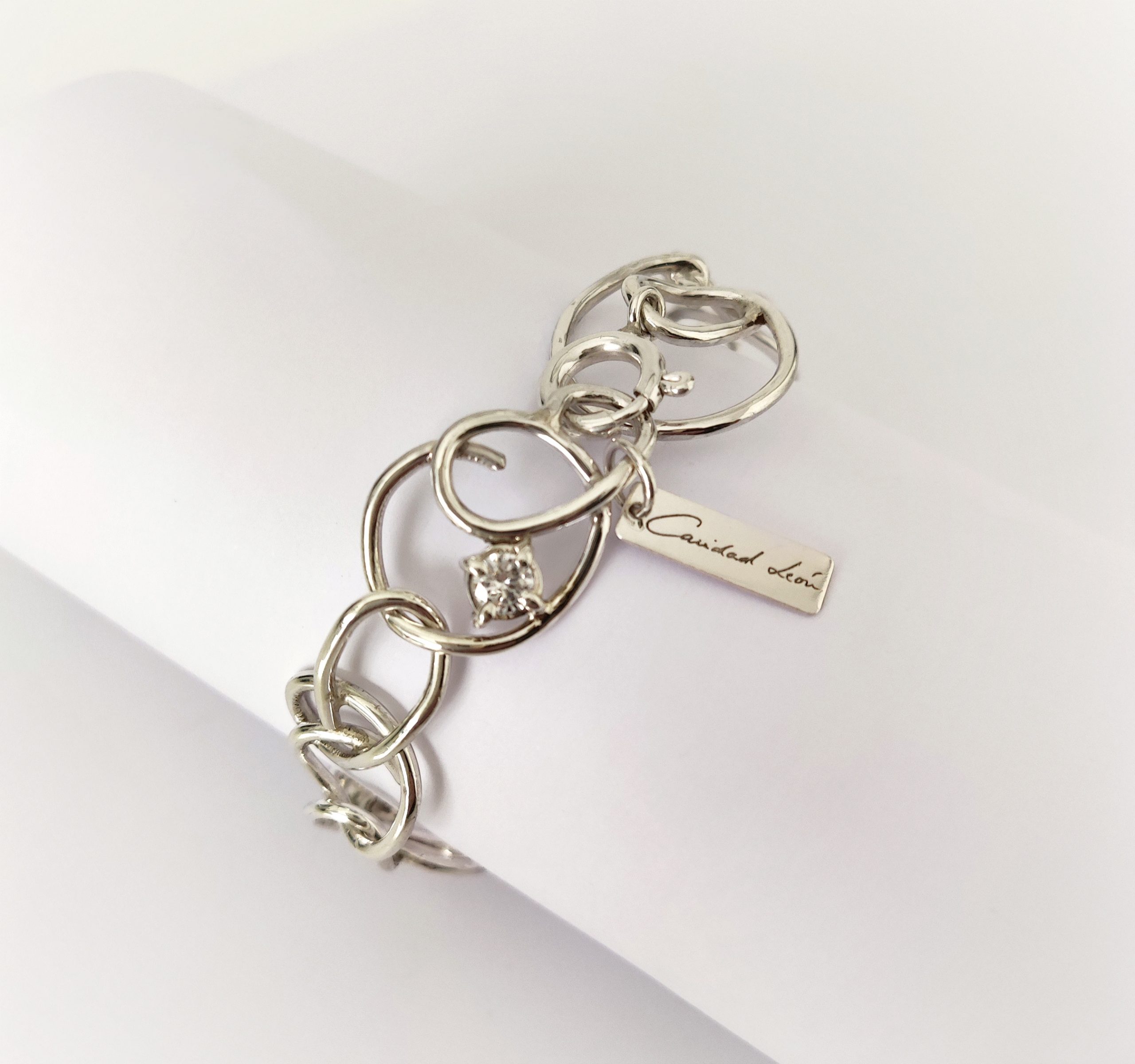 Pulsera de plata de primera ley o 925 milésimas, con acabado pulido efecto espejo y circonitas engastadas en garra.