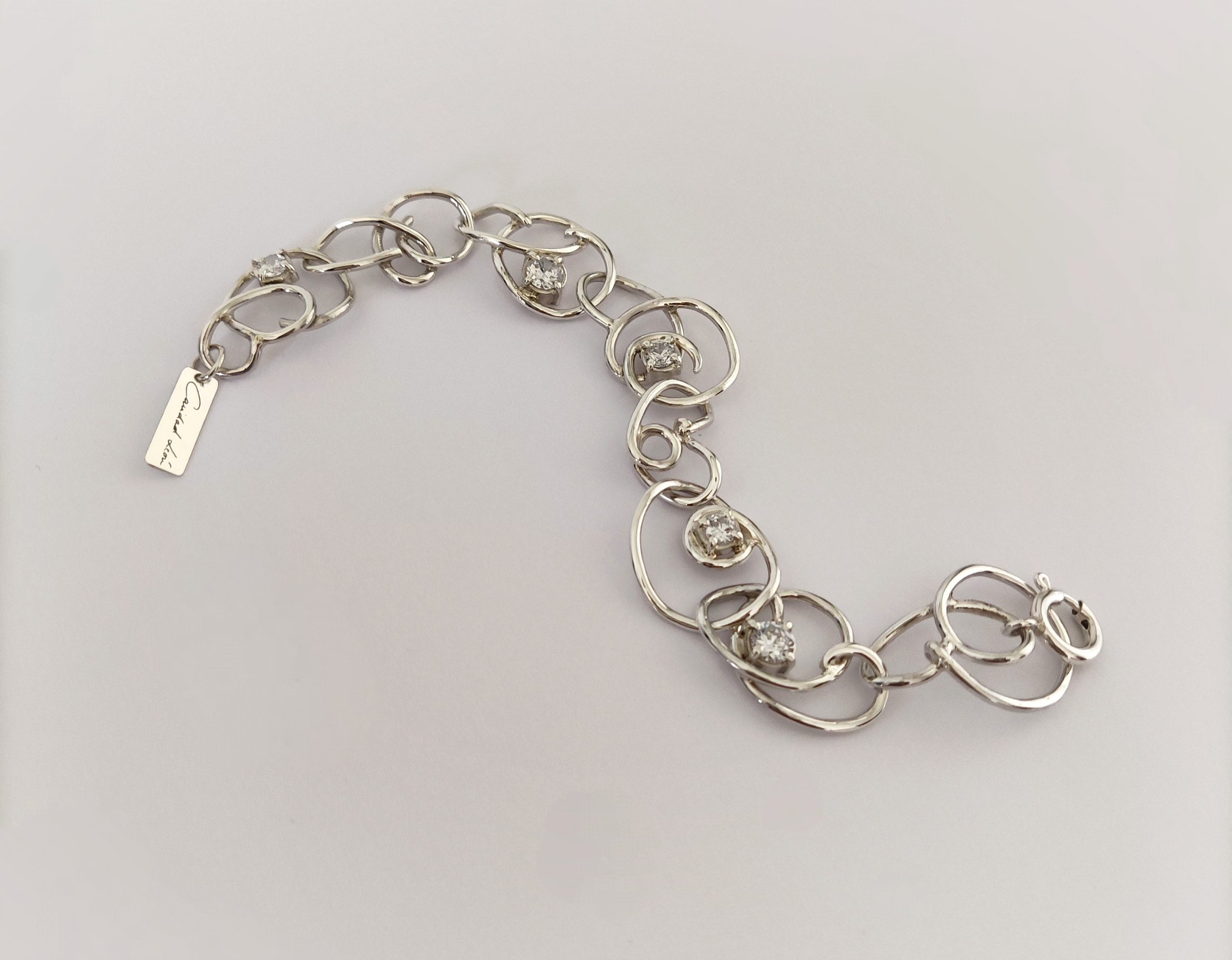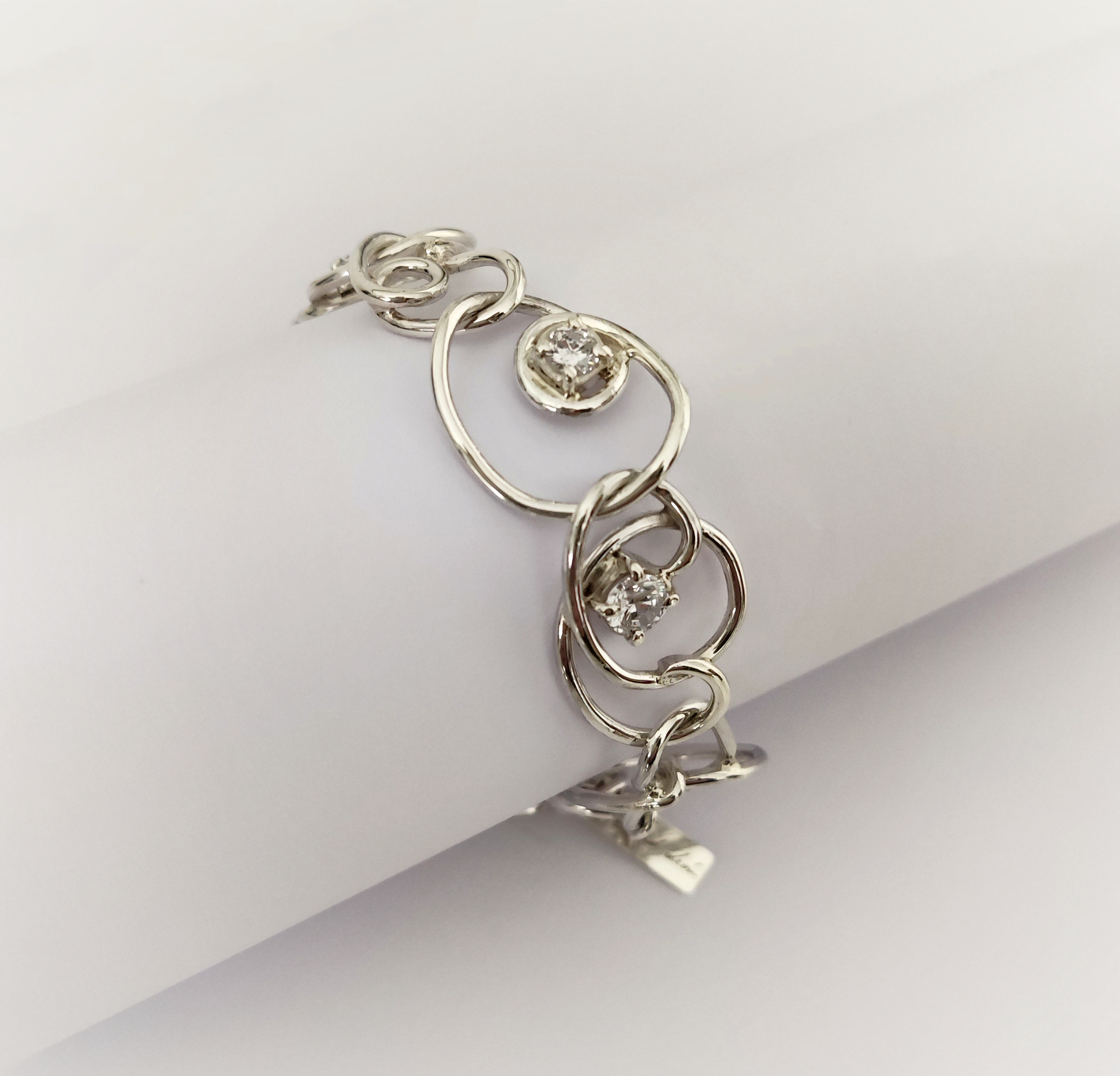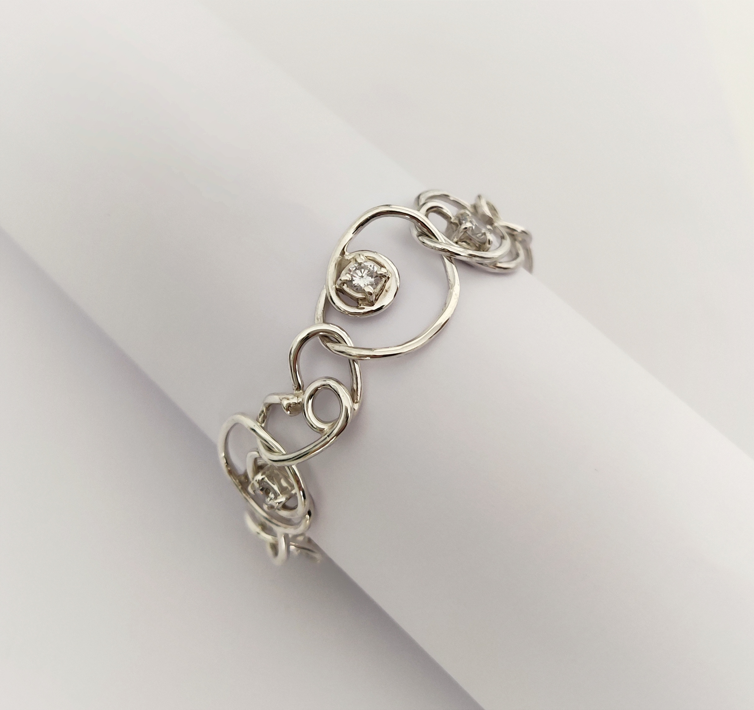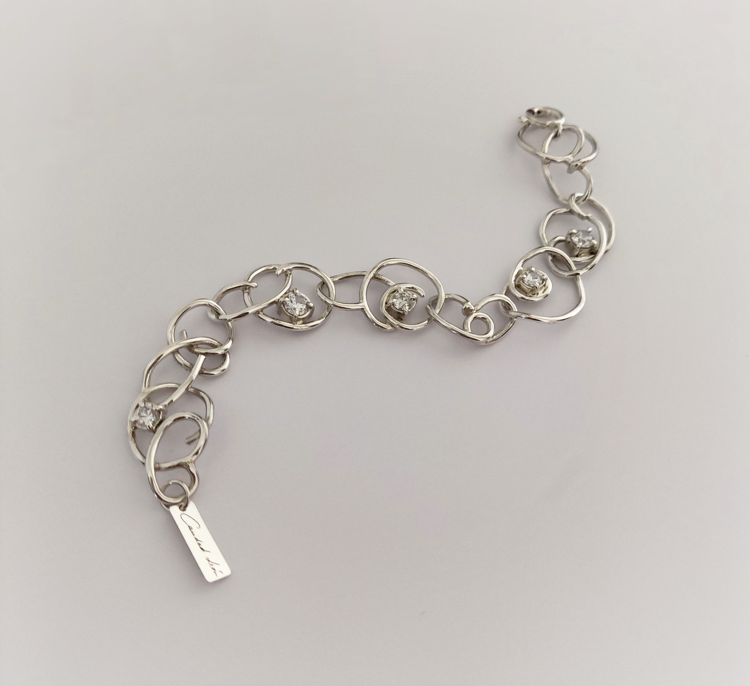 Pulsera de plata de primera ley o 925 milésimas, con acabado pulido efecto espejo y circonitas engastadas en garra.