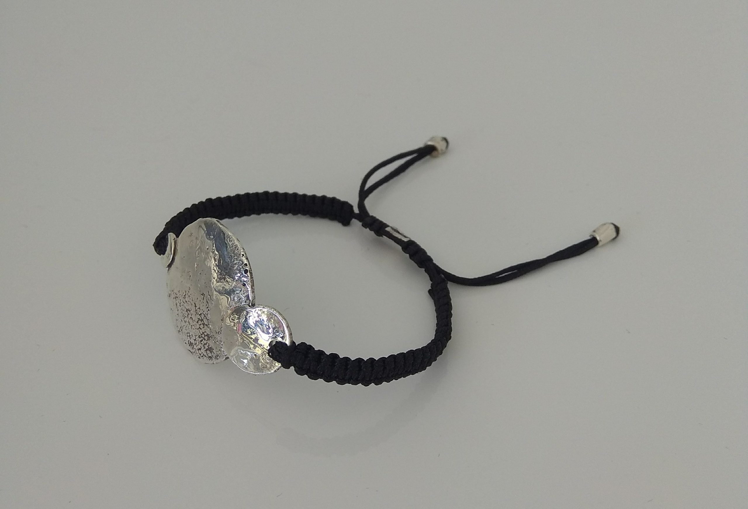 Pulsera tejida con nylon y plata de 925 milésimas de acabado pulido rugoso.