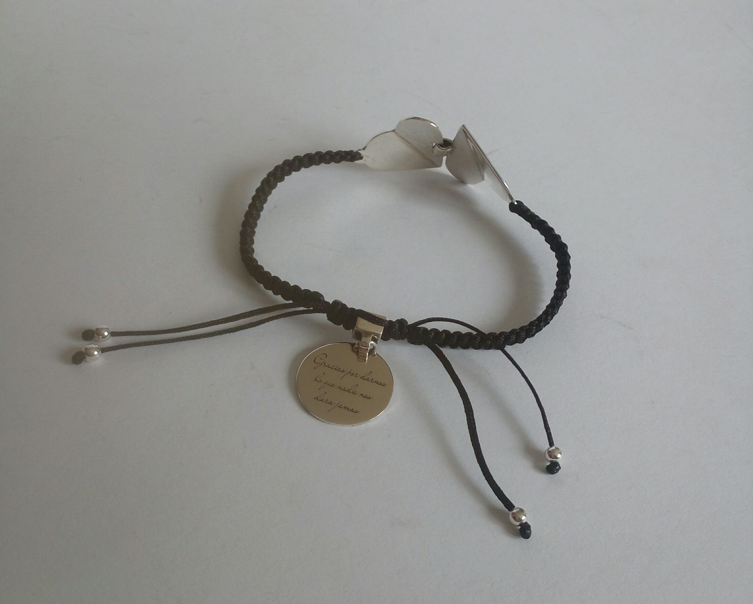 Pulsera tejida en nylon con plata de 925 milésimas y acabado pulido efecto espejo.