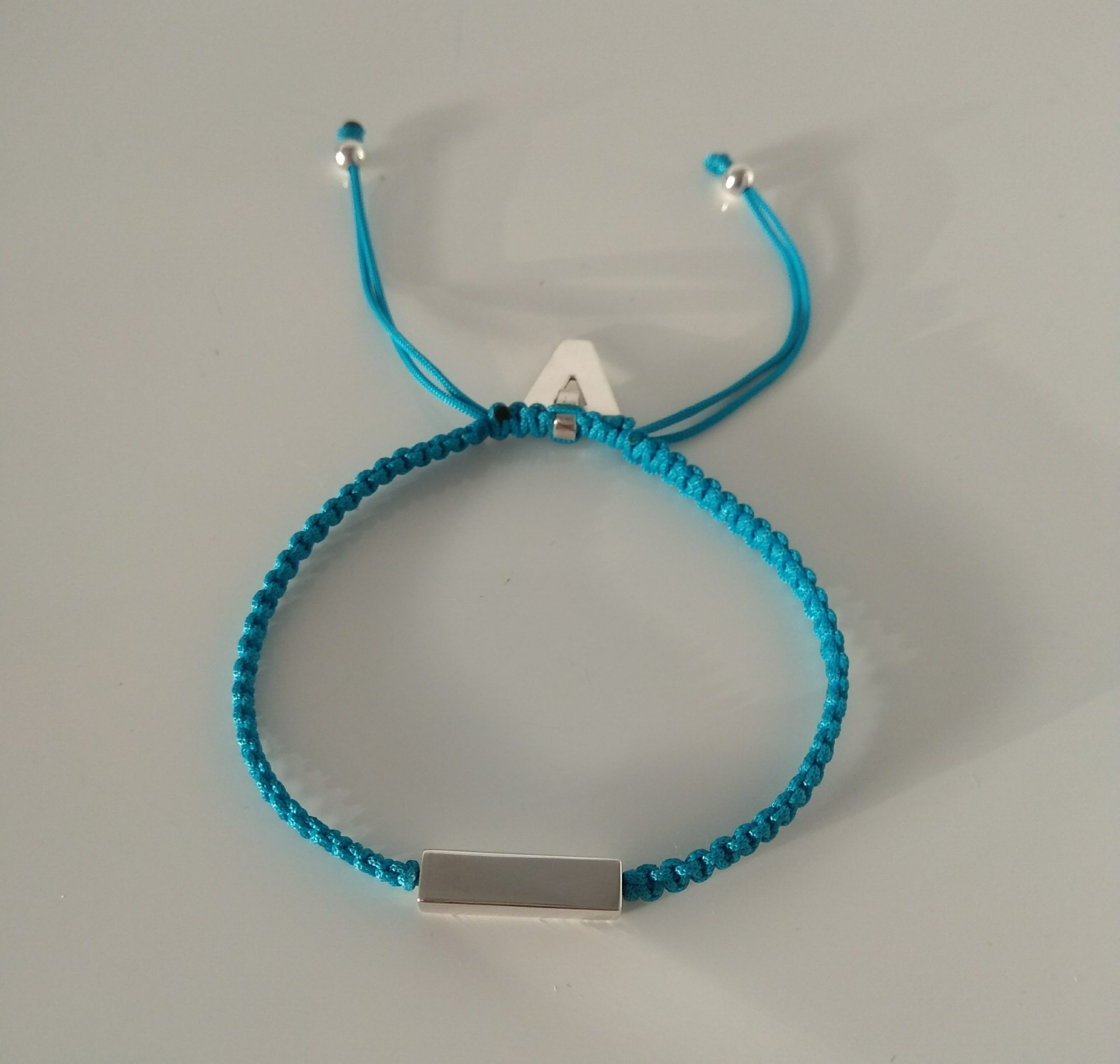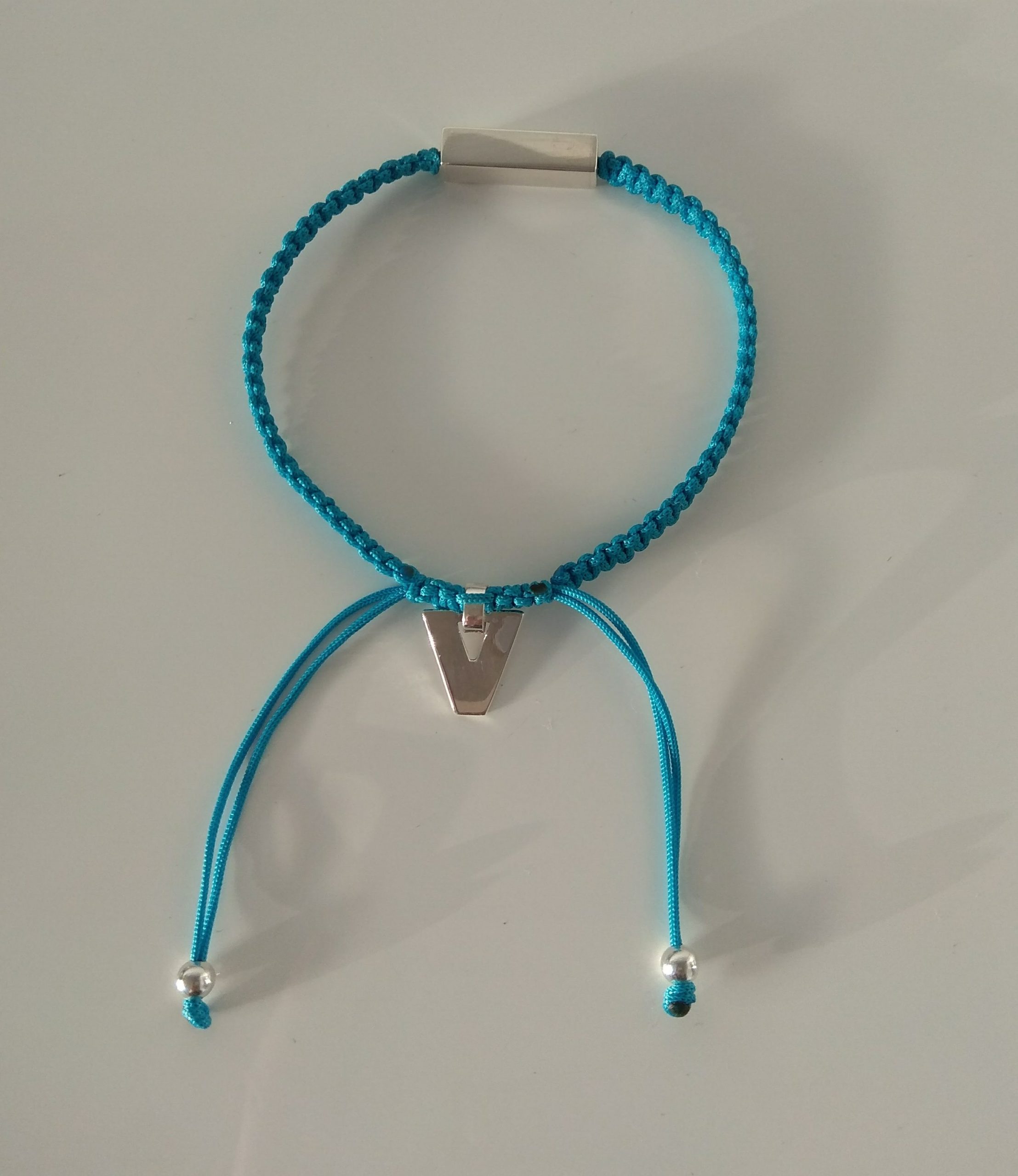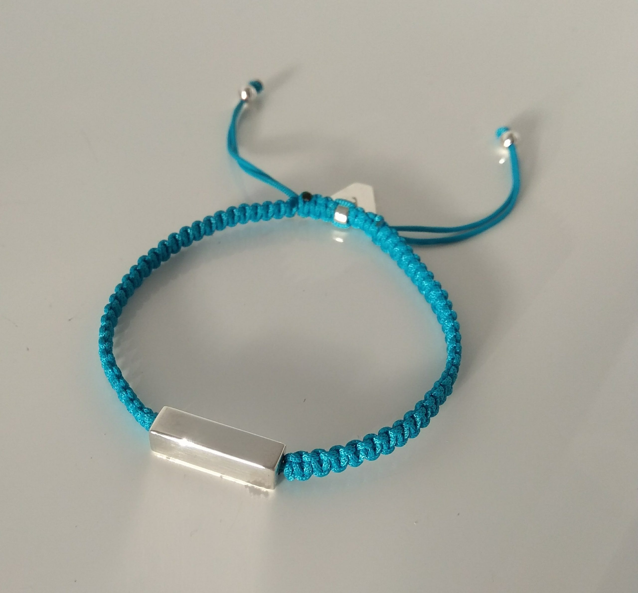 Pulsera de plata de 925 milésimas tejida con hilo azul de nylon en macramé.